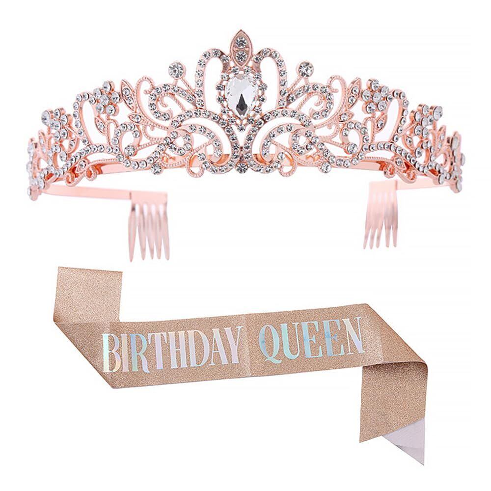 【セット内容】王冠1個、バースデーガールベルト1個。色: ローズゴールド。