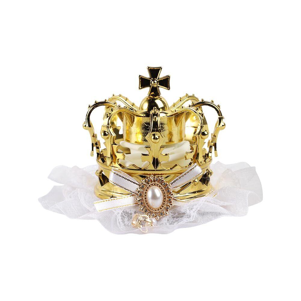 手のひらぐらいのミニサイズの王冠です。直径:8.5-9cm 高さ:5.5-6.3cm 重さ:84g 素材:合金、真珠、ストーン 内容:王冠+収納ボックス