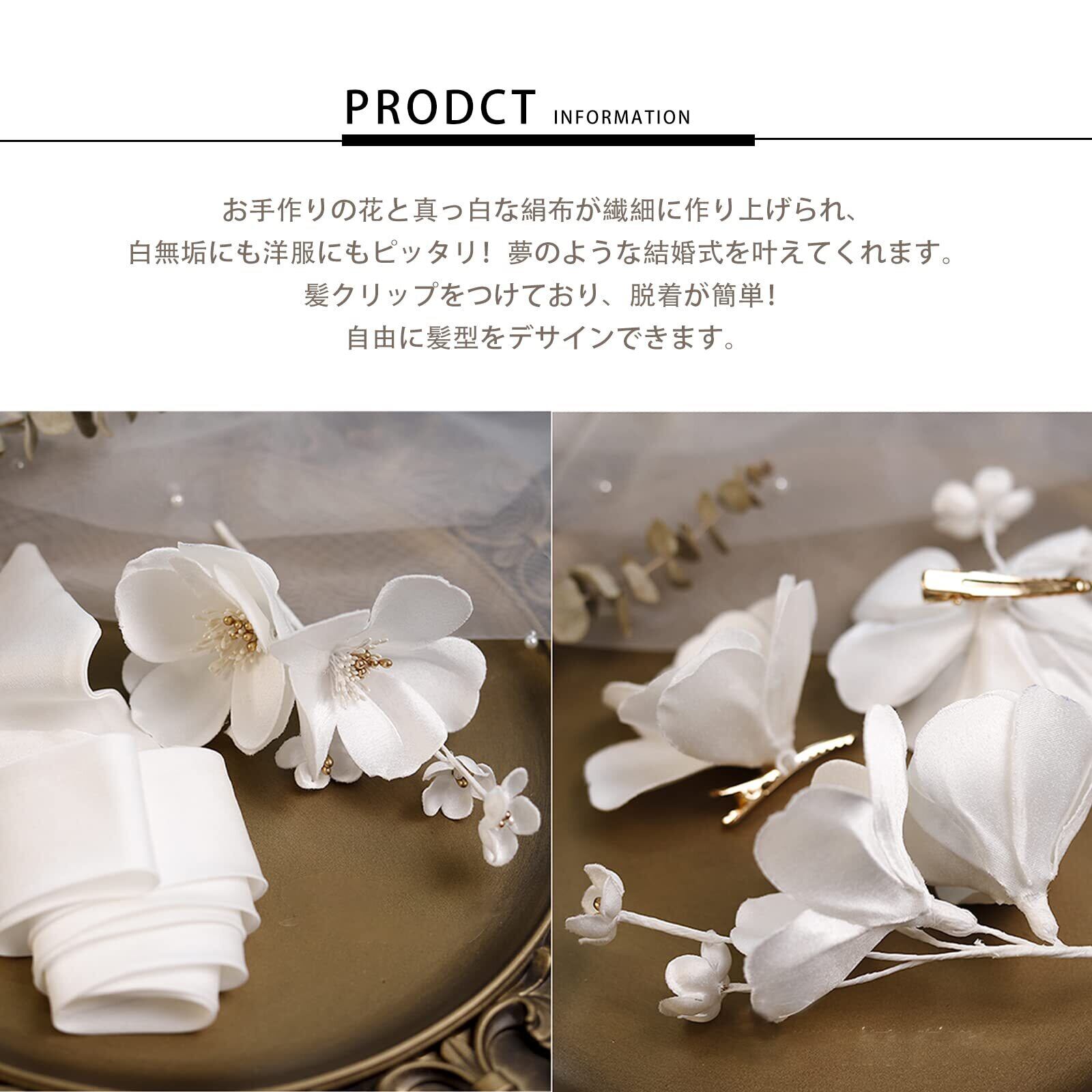 【花嫁に最適】 小花が髪クリップで固定、髪に優しく、脱着も簡単!髪型に合わせて、多様なデサインが可能です。伝統的な白無垢にもおしゃれな洋服にも、ご使用できる純白絹布と小花のヘッドドレスです。派手すぎず優雅、上品な花嫁を作り上げられ、一生忘れられない夢のような結婚式を叶えてくれます。