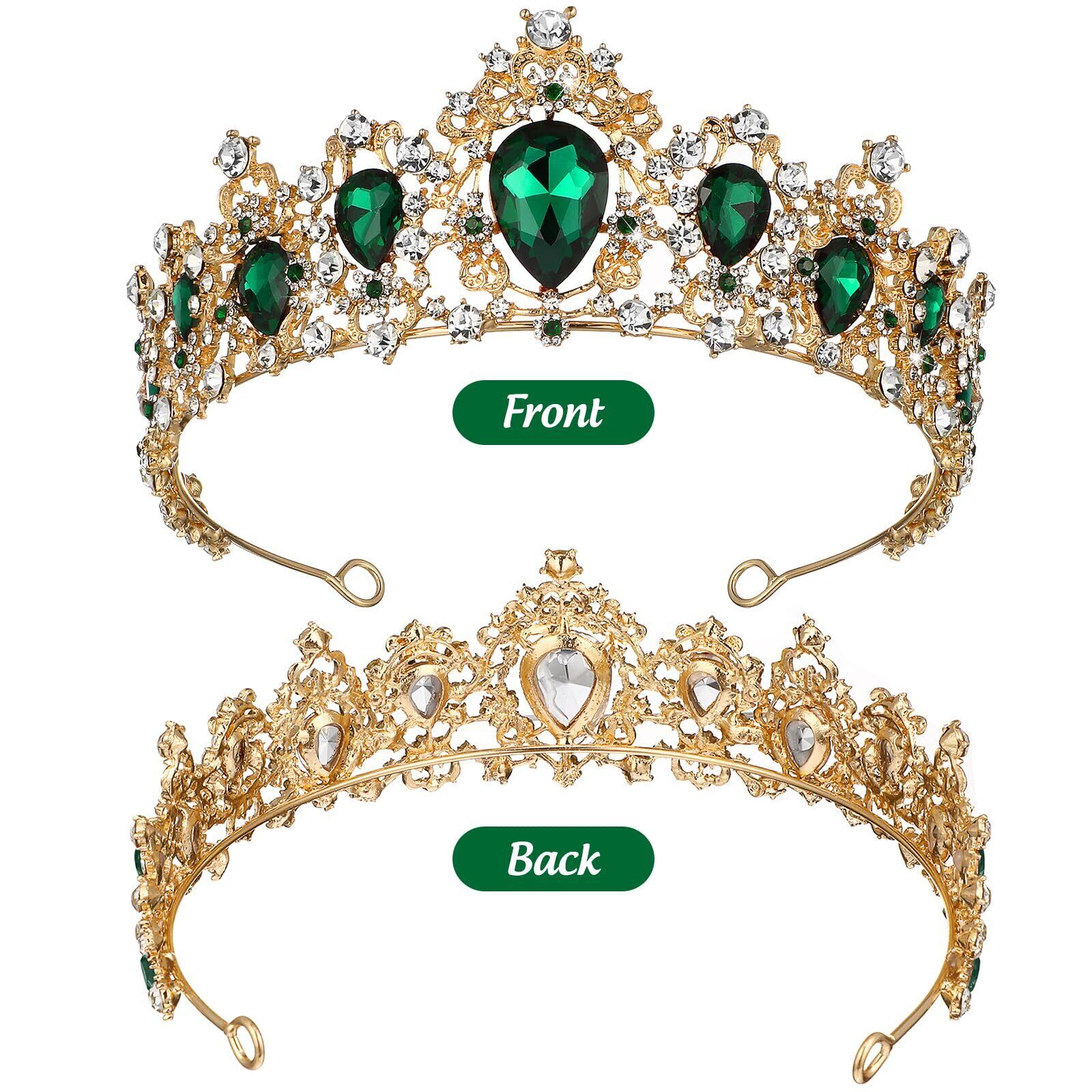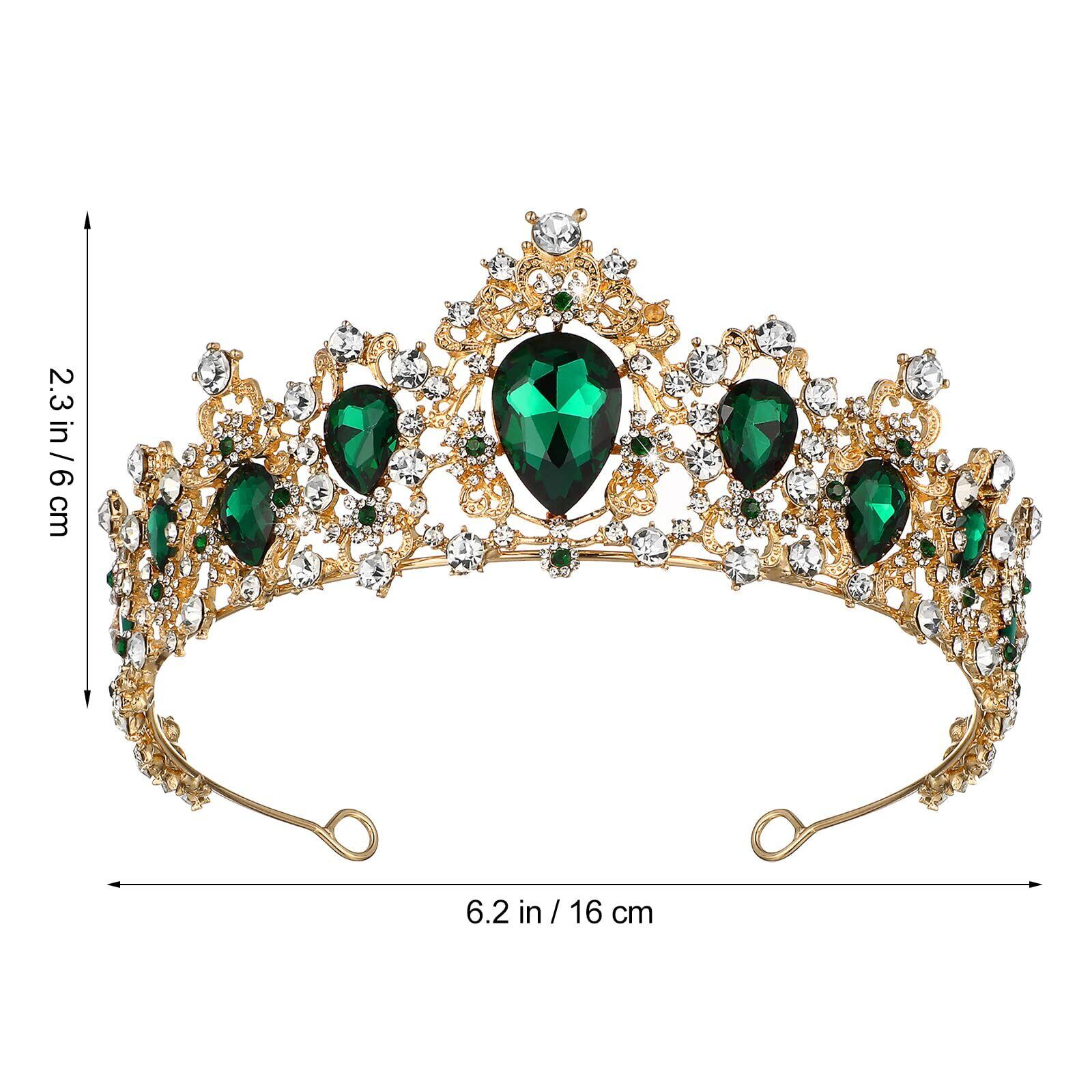 Lurrose 花嫁の王冠 ティアラ 結婚式用ヘアアクセサリー グリーンとゴールド バロックスタイル 15×15×6Cm 軽量123G パーティーや特別な日の装いに