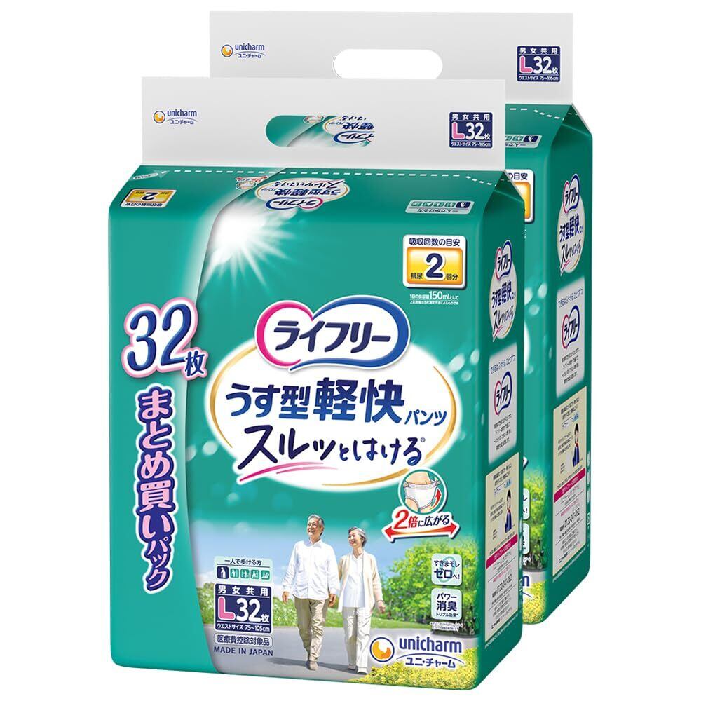 ライフリー うす型軽快パンツ 2回吸収 Lサイズ ケース品64枚 (32枚×2パック) 大人用オムツ