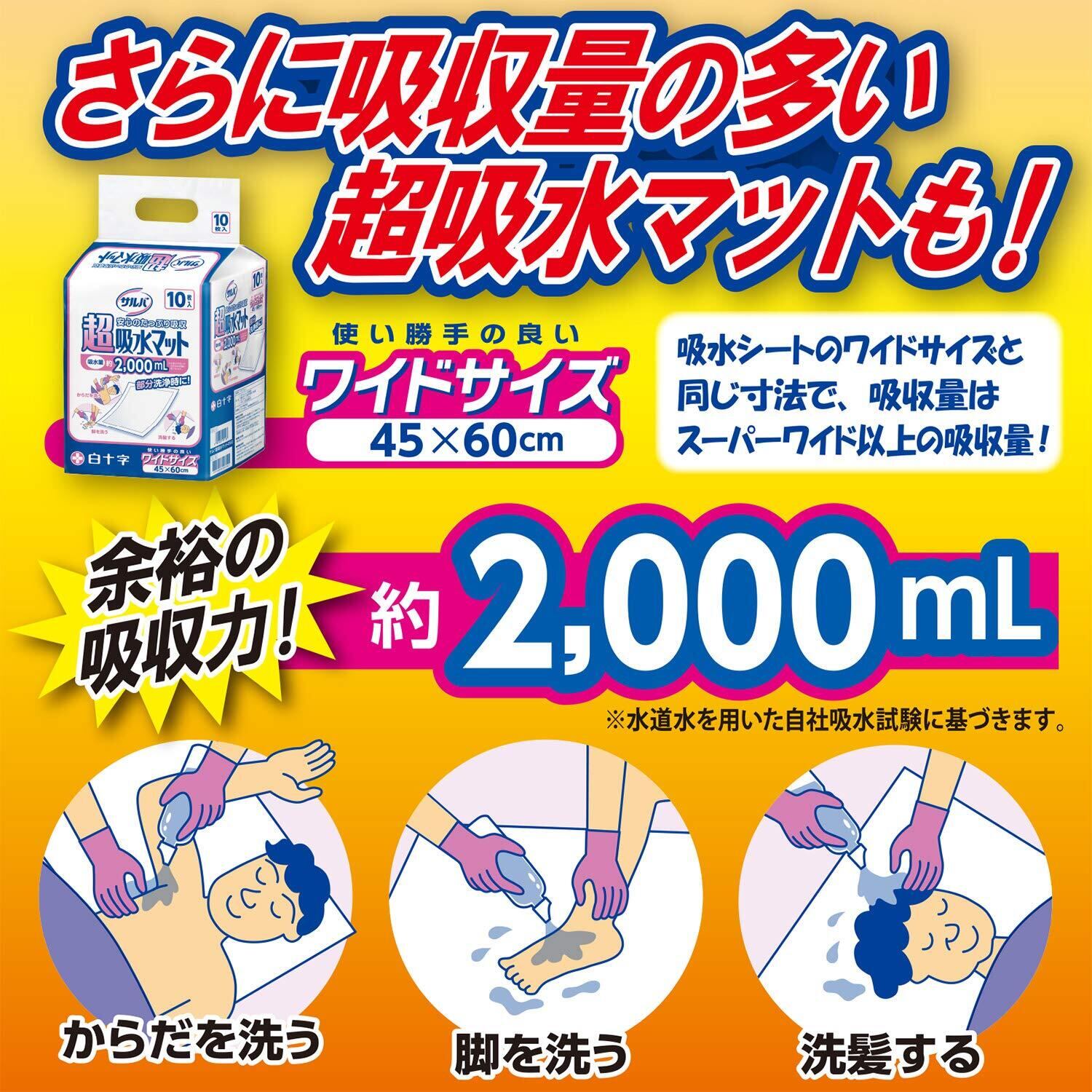 ●吸水量:約1,500mL(水道水を用いた自社吸水試験に基づきます。)