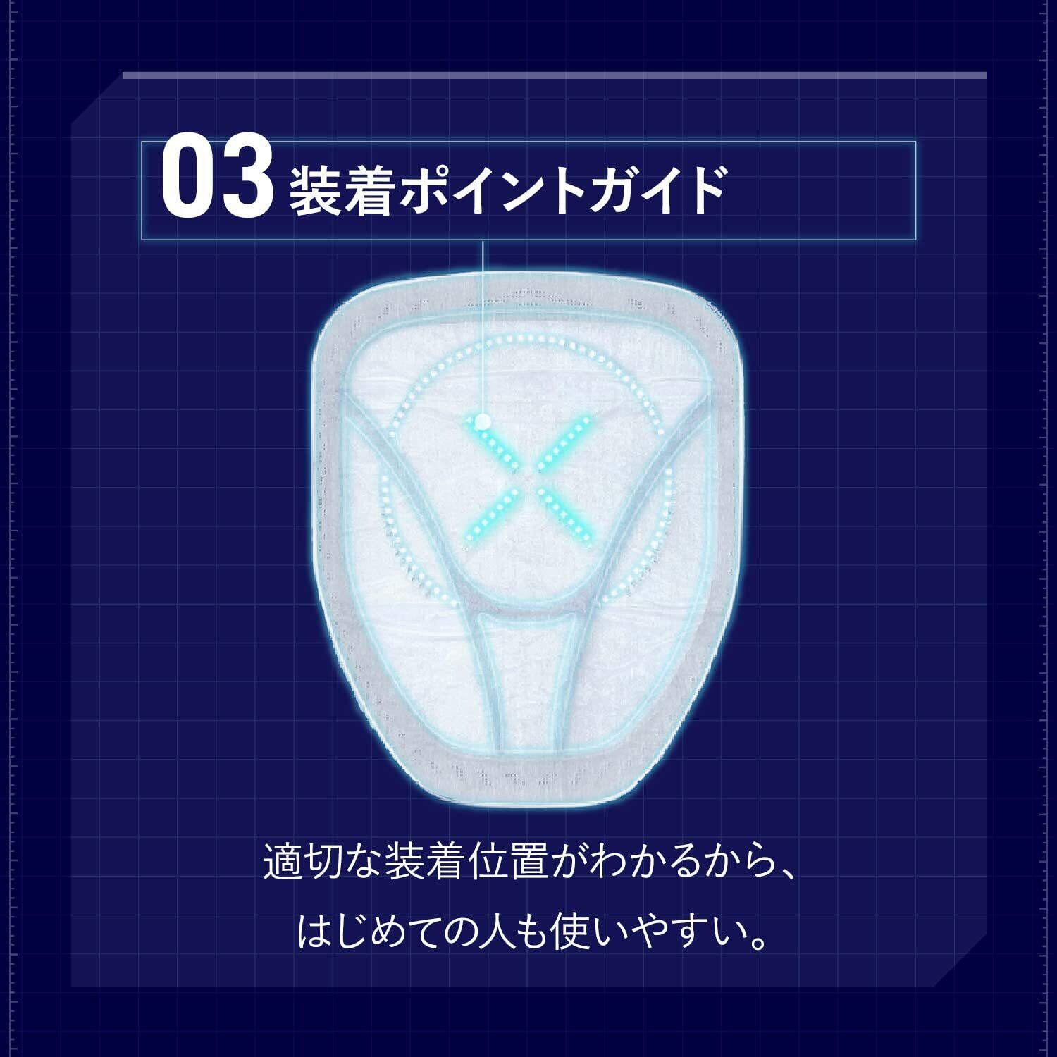 男性専用の「ズボンにしみない、目立たない」軽い尿もれケアシート。「極うす2.0mm吸水シート」で、つけごこち快適。「ぴったりスリット」設計で、動きにあわせてしっかりフィット。「装着ポイントガイド」ではじめての人も使いやすい。