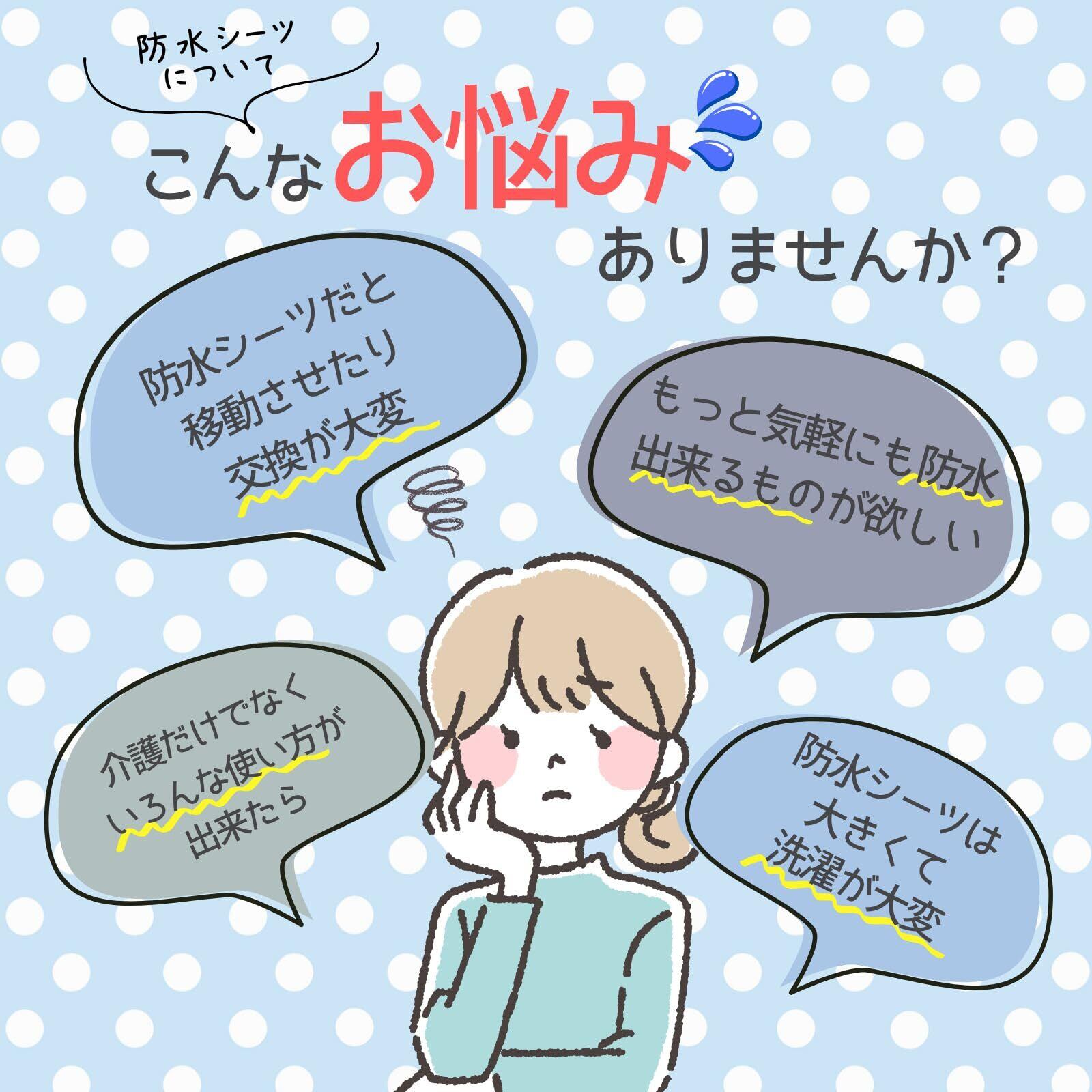 防水シートは、うっかり、ちょい漏れを防ぐ便利グッズ。乳幼児、子供、大人、高齢者の介護用品まで幅広く使える。ベッドシーツ、車のシートに広げて、腰に巻いて、ひざ掛けに多機能でマルチに大活躍。動いても尿、経血漏れの心配不要。
