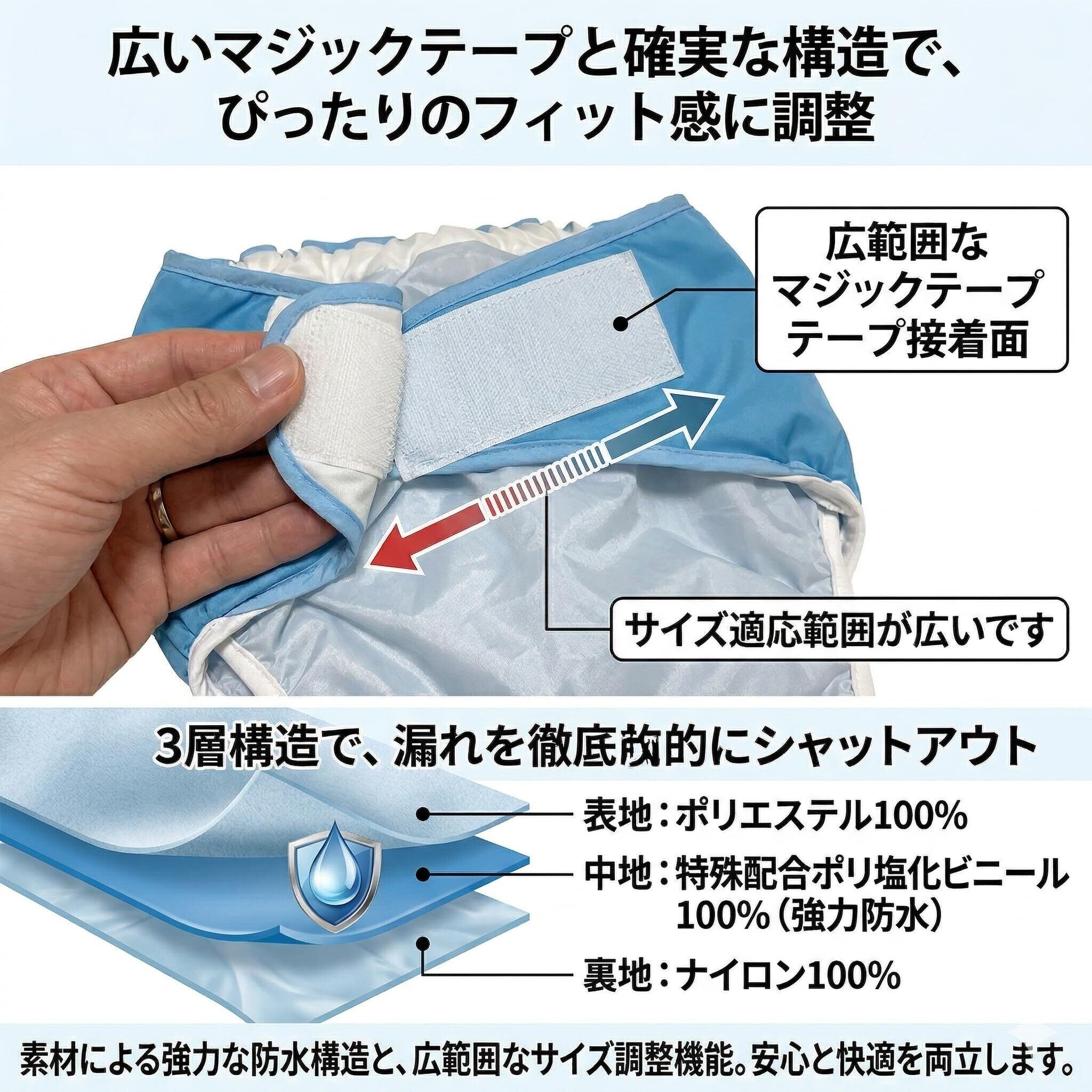 おむつカバー 大人用 日本製 抗菌防臭加工 マジックテープ式 (M)