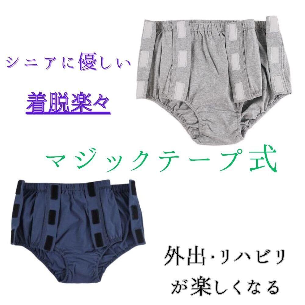 大人 用 おむつ カバー 失禁 対策 尿 漏れ 防止 マジックテープ式 介護 洗える パンツ カバー (ネイビー, L)