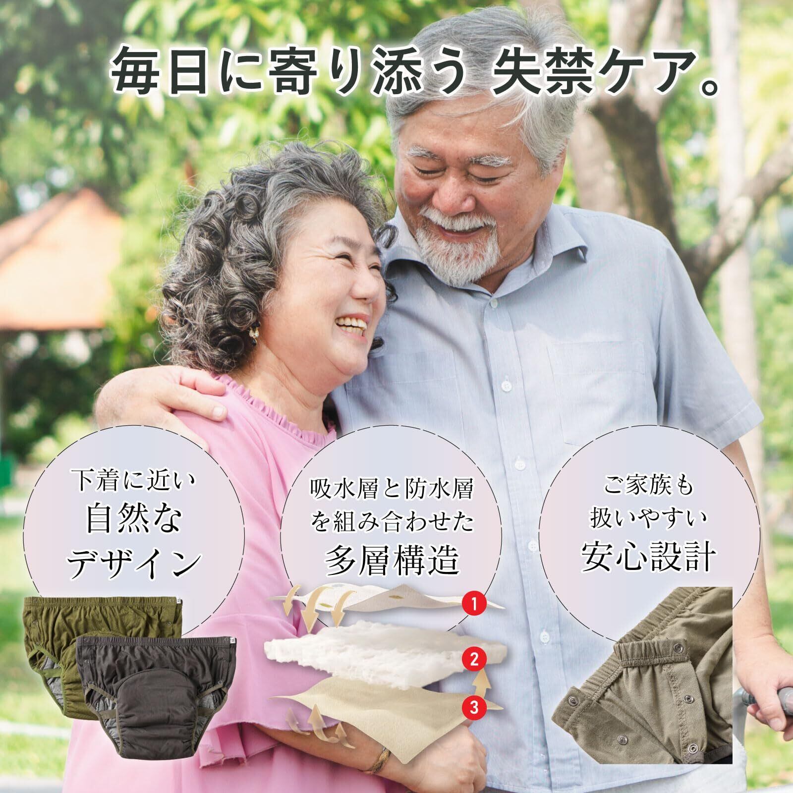 おむつカバー 大人用 失禁パンツ 尿漏れ防止 介護用 尿取りパッド対応 着脱簡単 男女兼用 PIENSE (カーキ, XL)