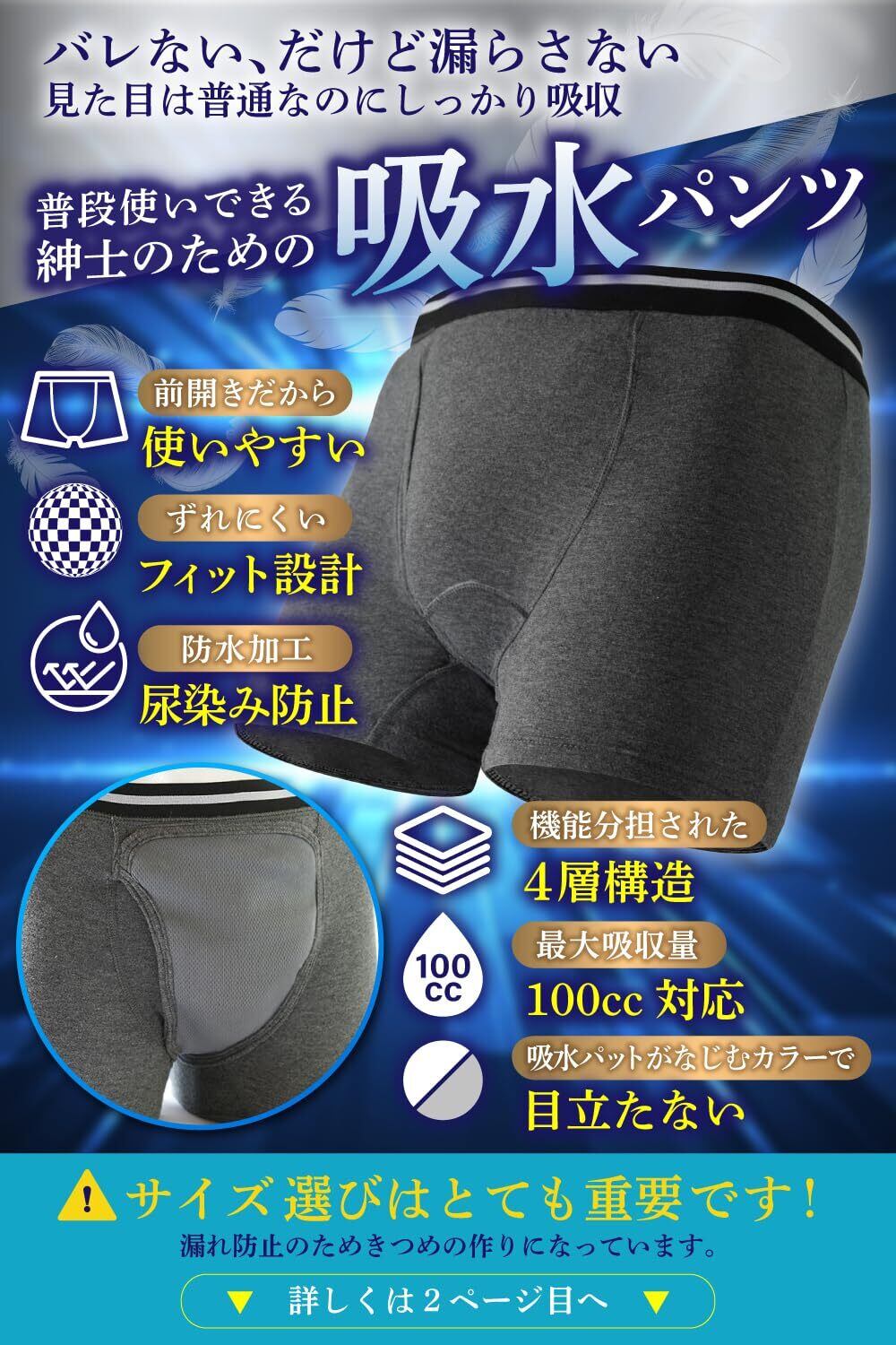 尿漏れパンツ にょうもれ男性用パンツ 失禁パンツ男性用 PochittoGoods (L, 2, 枚)