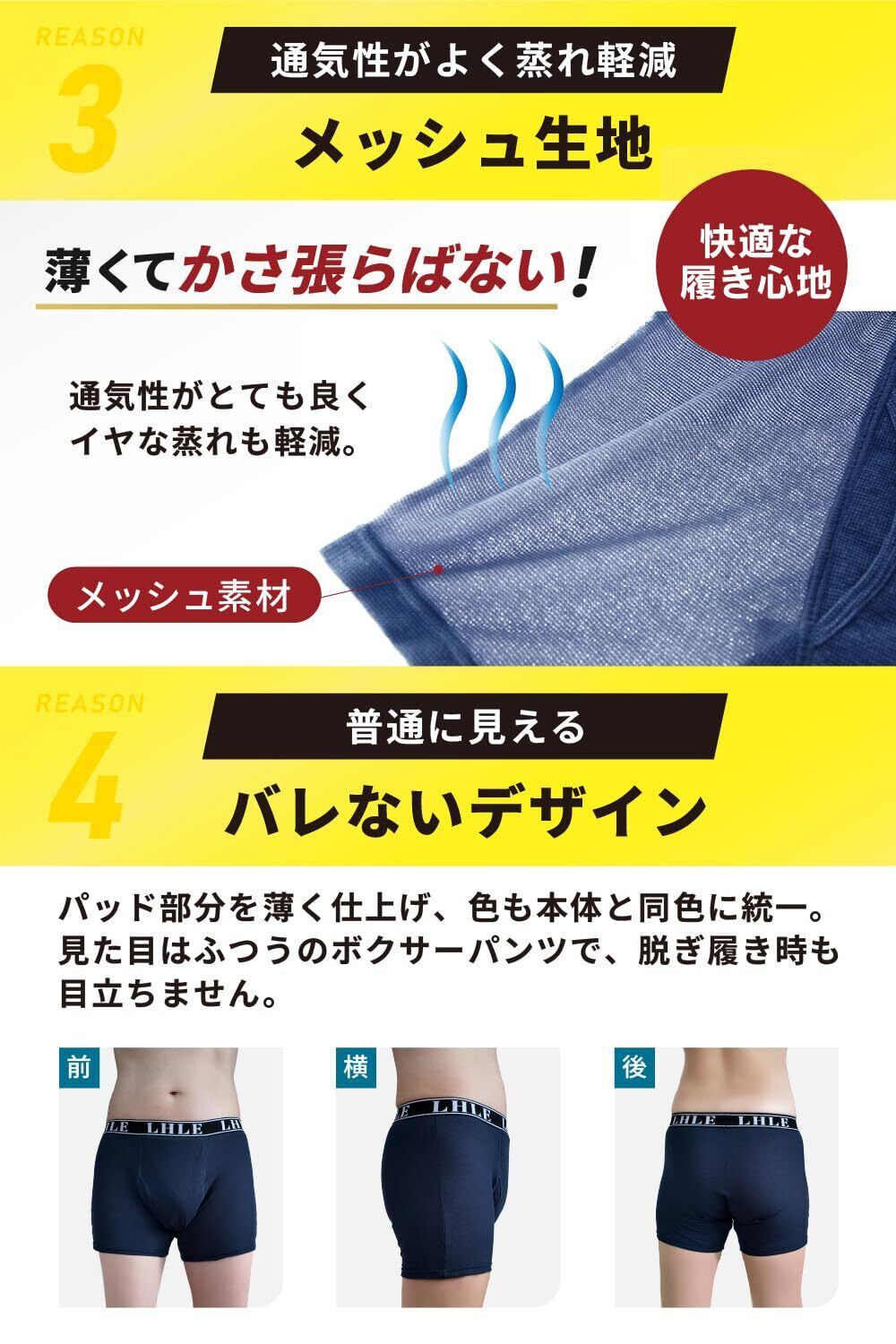 100cc 尿漏れパンツ 男性用 3枚組 99% 消臭 失禁 横漏れ防止 メッシュ生地 前開き (3枚組, L)