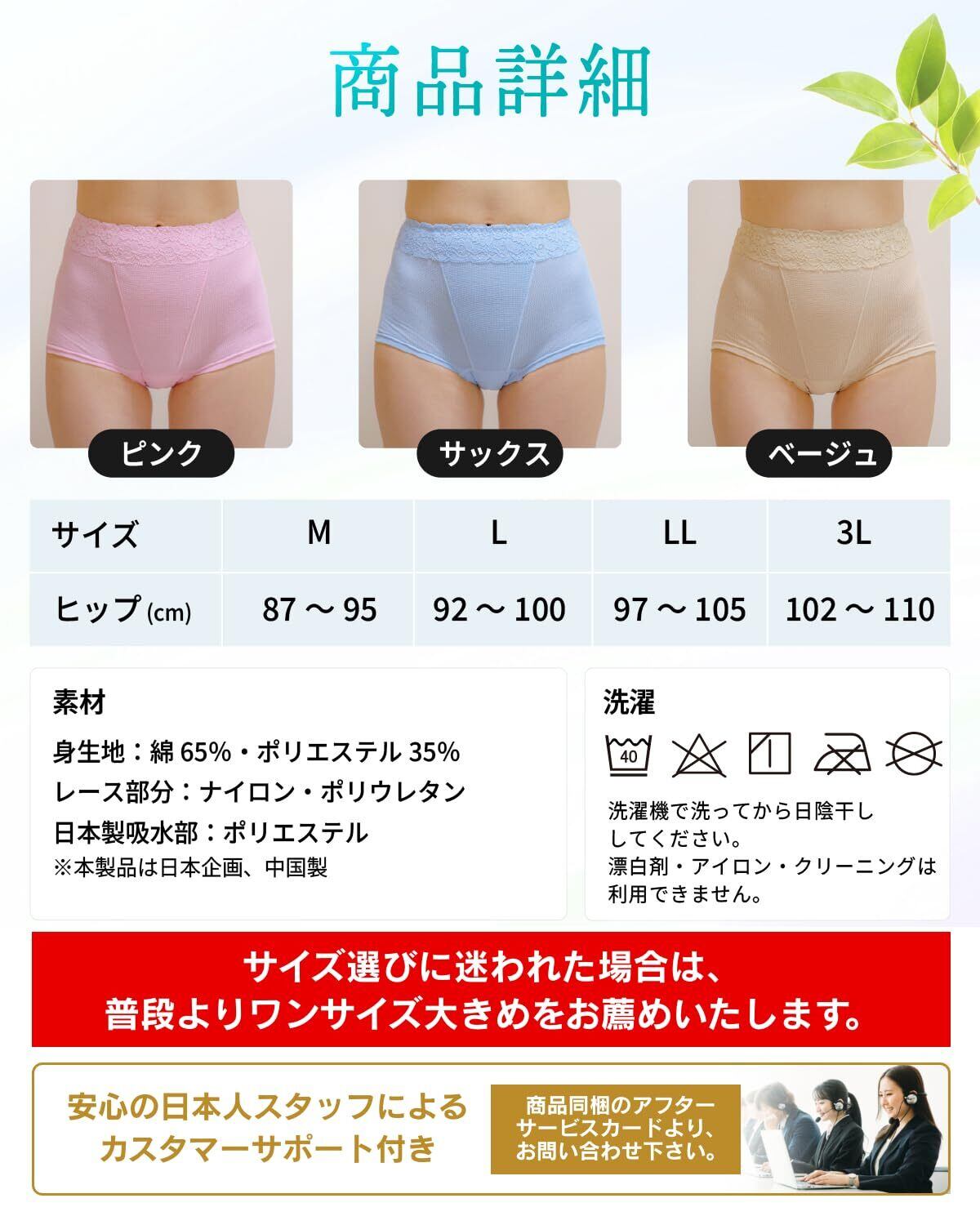 50cc 失禁 ショーツ 99% 消臭 にょうもれ 尿漏れパンツ 軽失禁 ガードル機能付 日本製吸水シート 臭い対策 レディース 女性用 (3色, L)