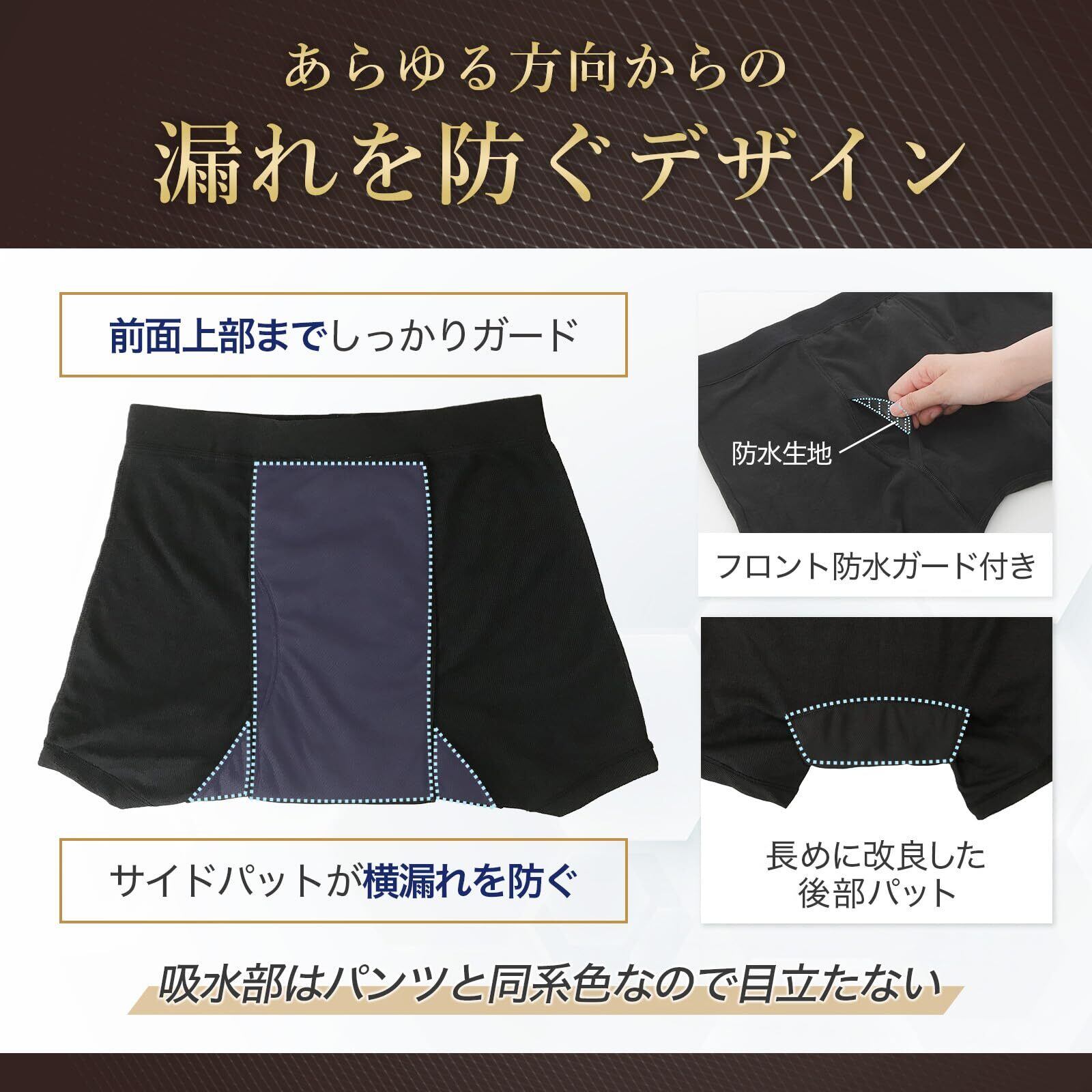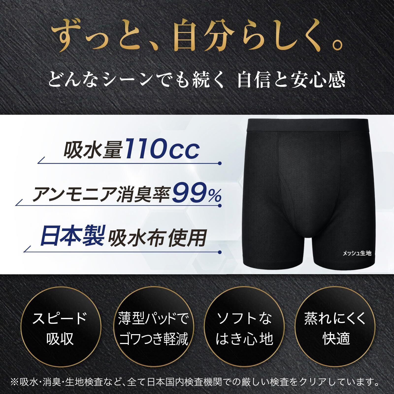 110cc 前開き 尿漏れパンツ 男性用 失禁パンツ ボクサー ブリーフ 日本製吸水布 メッシュ生地(L, 2, ブラック)