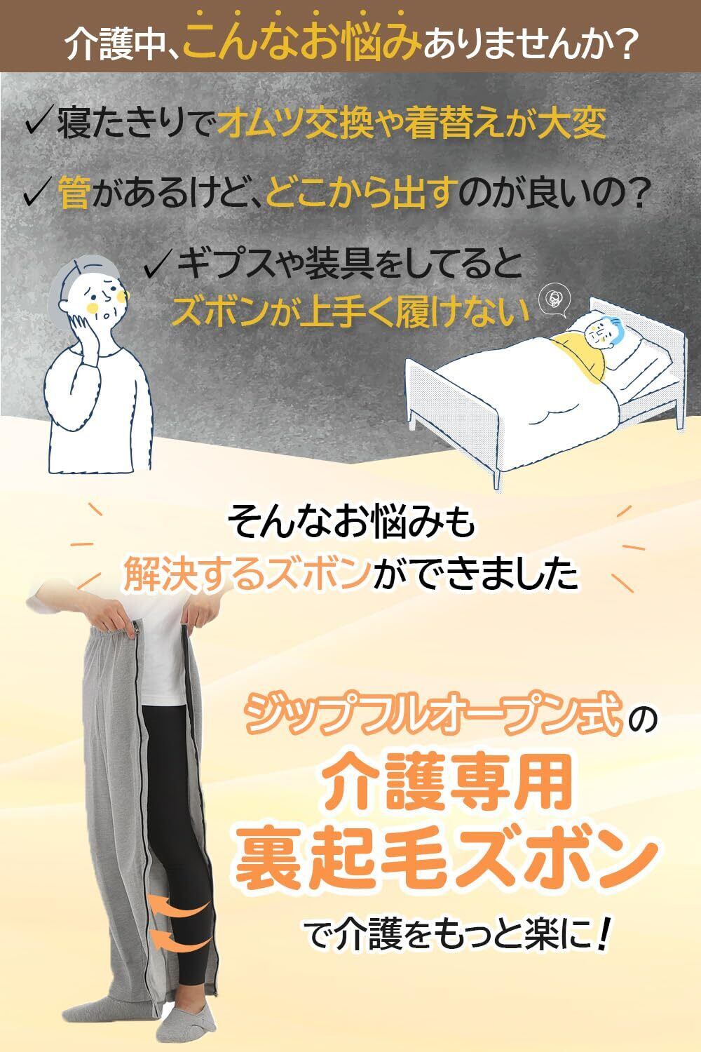 「毎日の介護を少しでも優しく、ラクにしたい」そんなご家族に寄り添うズボンです。
