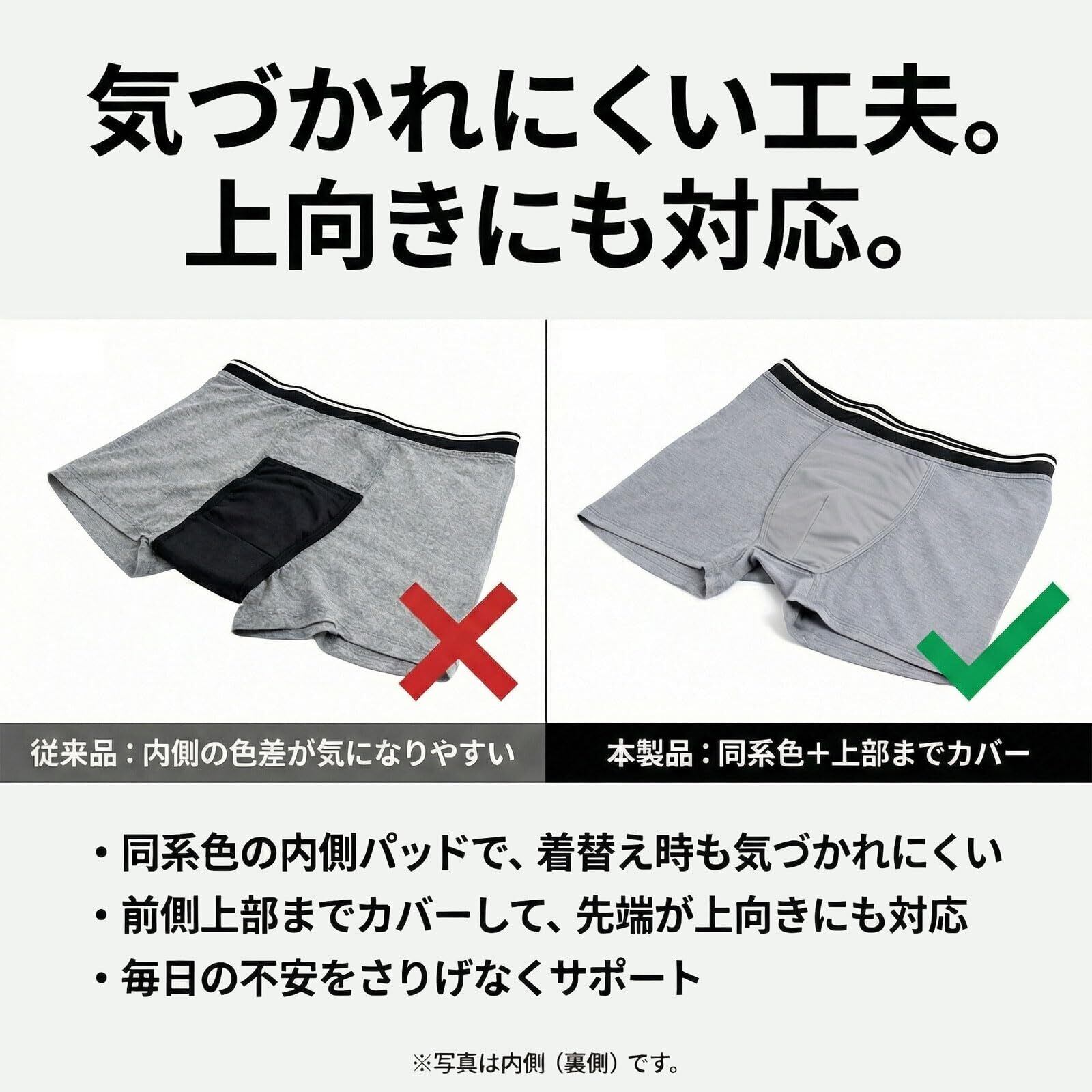【極薄パッドで快適な穿き心地】 厚さ0.2cmの吸水パッドで、ごわつきを抑え、普通のボクサーパンツのような快適さを提供します。