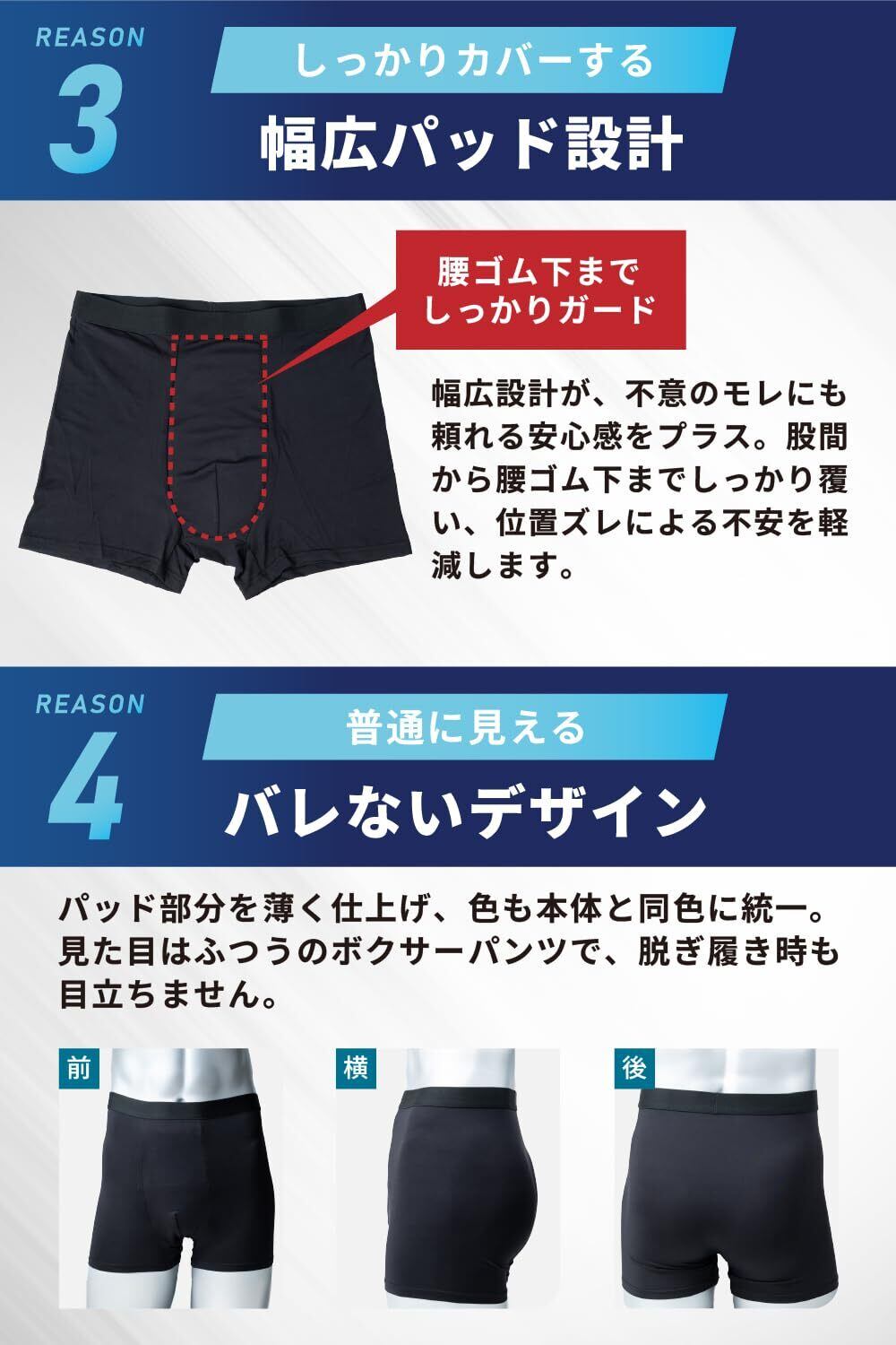 【尿も臭いも通さない信頼の日本製吸水パッド】 日本製の4層構造で50cc(大さじ約3杯分)の吸水に対応。消臭率99%でニオイも軽減。ムレにくくサラッとした快適さが続く尿もれパンツです。