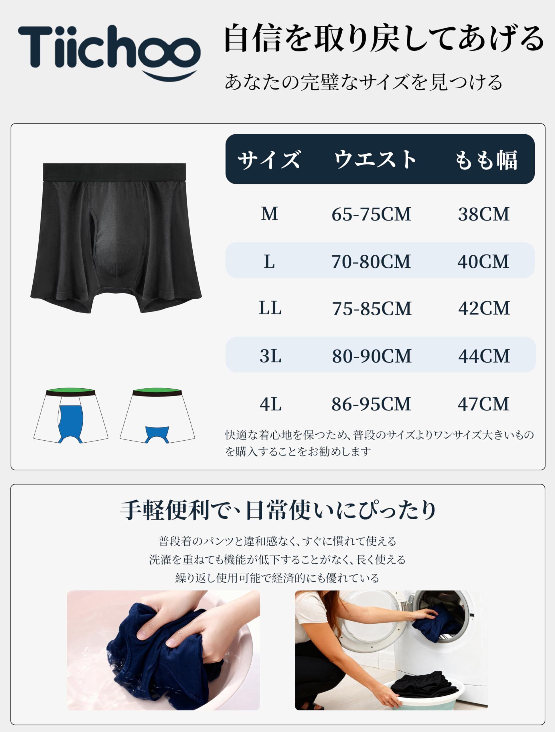 TIICHOO 失禁ボクサーパンツ男性用 綿 尿漏れパンツ 紳士 にょう漏れパンツ 尿もれ対策 前開き 吸収量100cc 3枚組