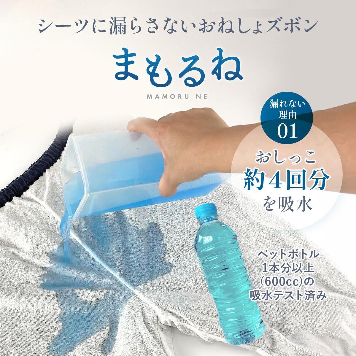 就寝中の尿漏れを防ぐ3層生地の構造で、防水層にTPUフィルムを内蔵しています。介護する側もされる側も安心しておやすみいただけます。