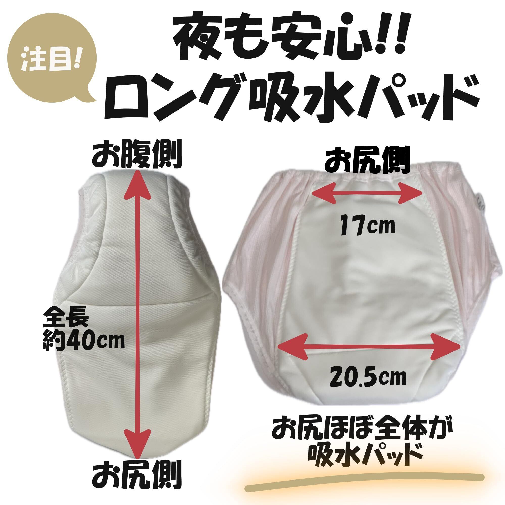 【吸水生地に関して】 強力6断層・・・高性能アンモニア消臭機能繊維である吸収布ディスメル?を2枚重ねにしています。更に別素材の吸収布2種と防水シート1種、そして肌触りの良い綿100%身生地を重ねあわせた素材です。