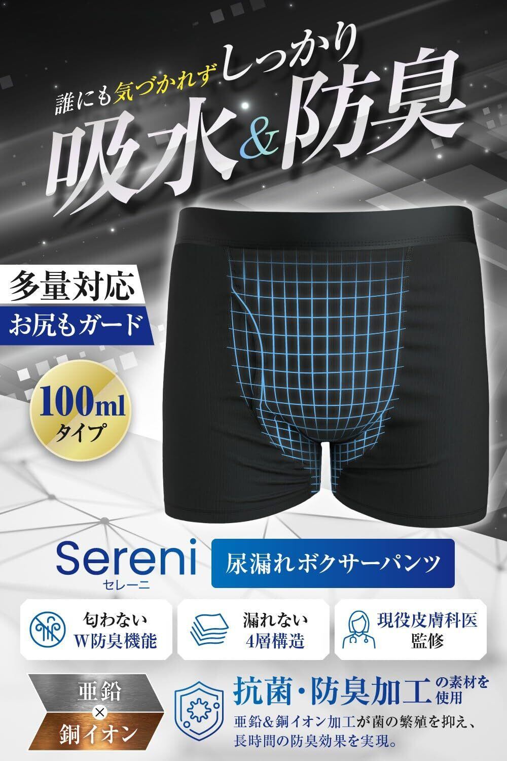 尿漏れパンツ 男性用 100ml 前開き にょうもれ 失禁パンツ 紳士 ボクサーパンツ 吸水パンツ セレーニ 3枚アソートセット (クロ チャコール ネイビー M)