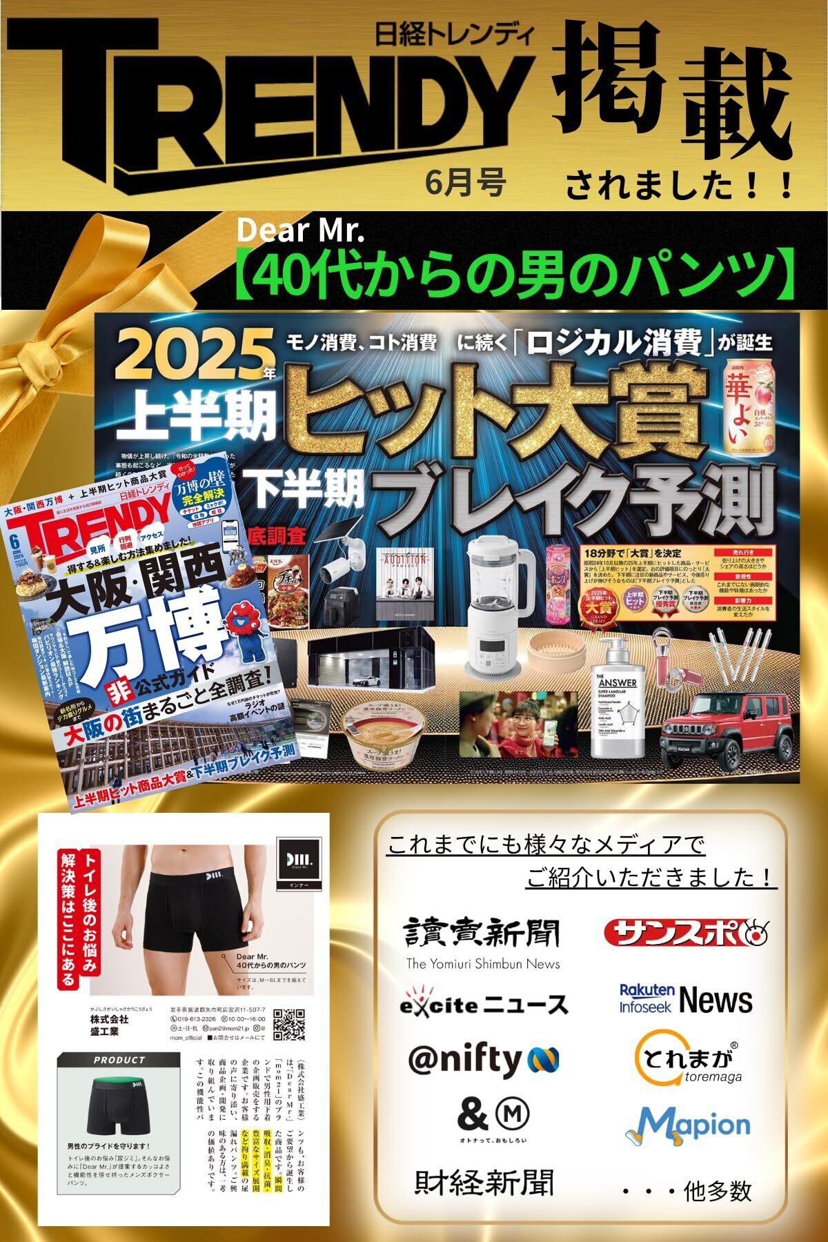 【商品詳細】◆ブランド名:Dear Mr. ◆用途:男性用尿ジミ防止パンツ、尿漏れパンツ、機能性パンツ(失禁用ではなく、約15ccの残尿戻りをズボンにシミさせないためのパンツです)【返品・交換について】下着という商品の特性上、1度お受け取りになられた商品は、未使用品であってもお客様のご都合による返品・交換はお受けできませんのでご了承ください。