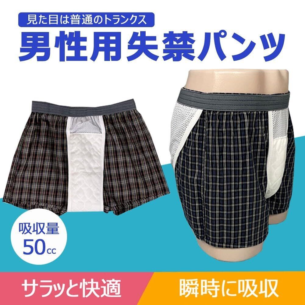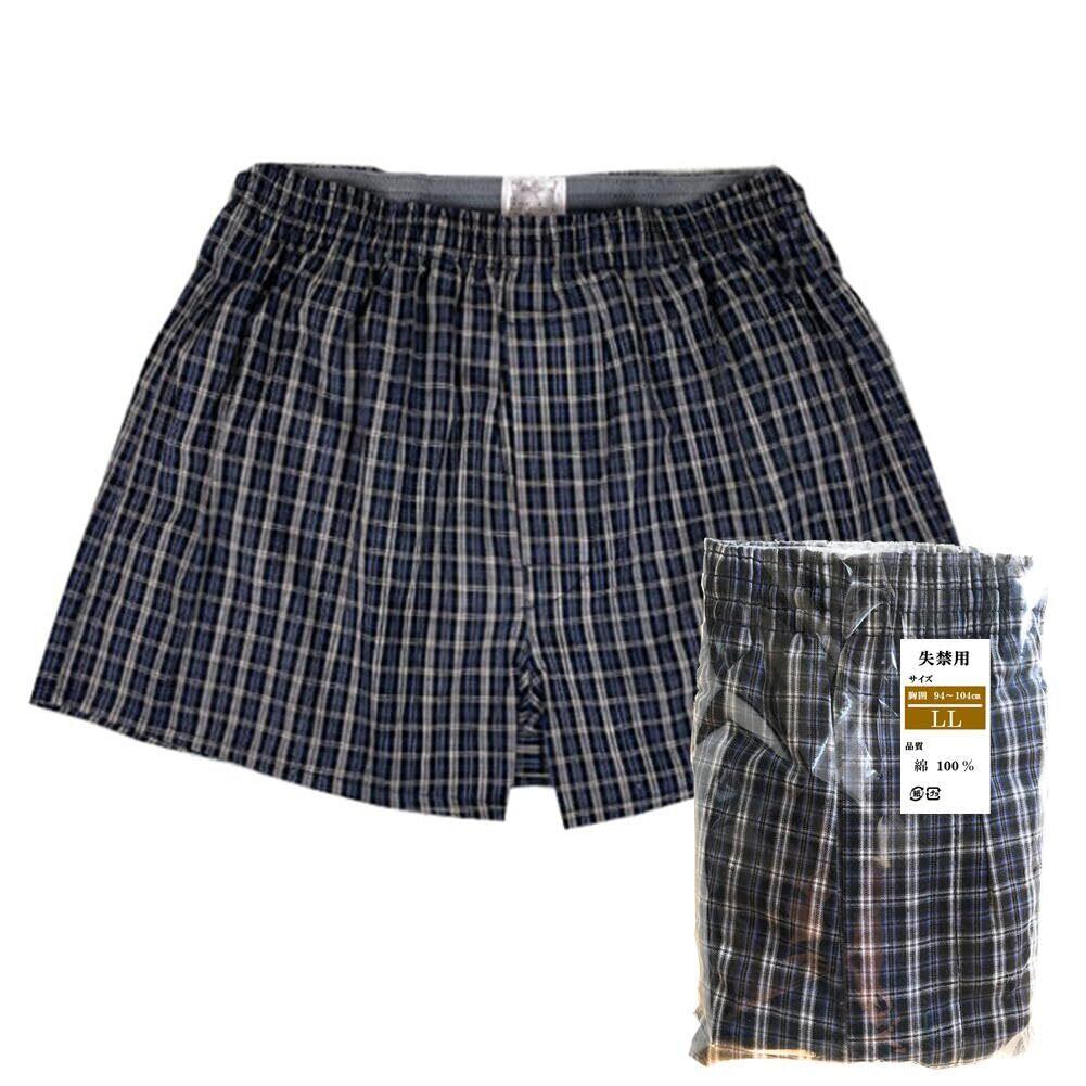 失禁 尿 漏れ パンツ 男性 用 メンズ 吸水 尿漏れパッド 失禁用 尿失禁 下着 トランクス 吸収量50cc 前開き 紳士 尿もれ対策 (ネイビーチェック 1枚, LL)