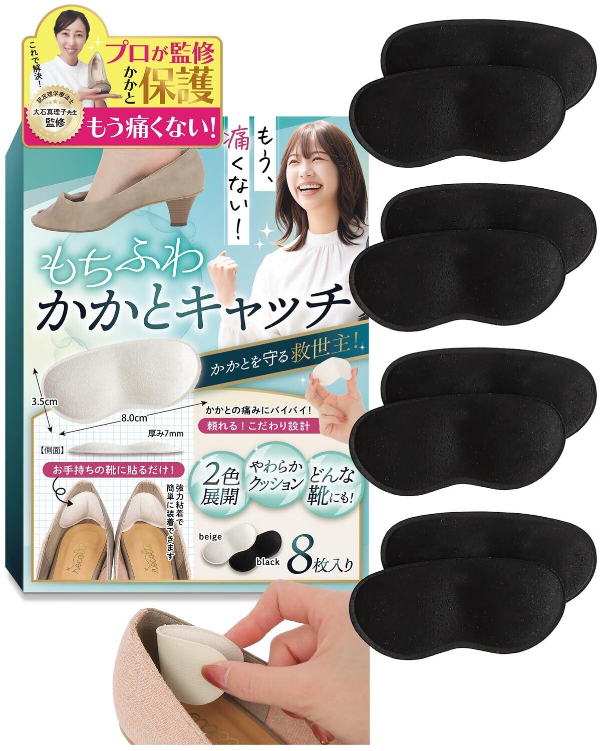 かかとパット 足用保護パット 靴擦れ防止 かかと保護 かかとクッション サイズ調整 柔らか 靴ズレ防止 痛みなし 4足 8枚いり (ブラック)
