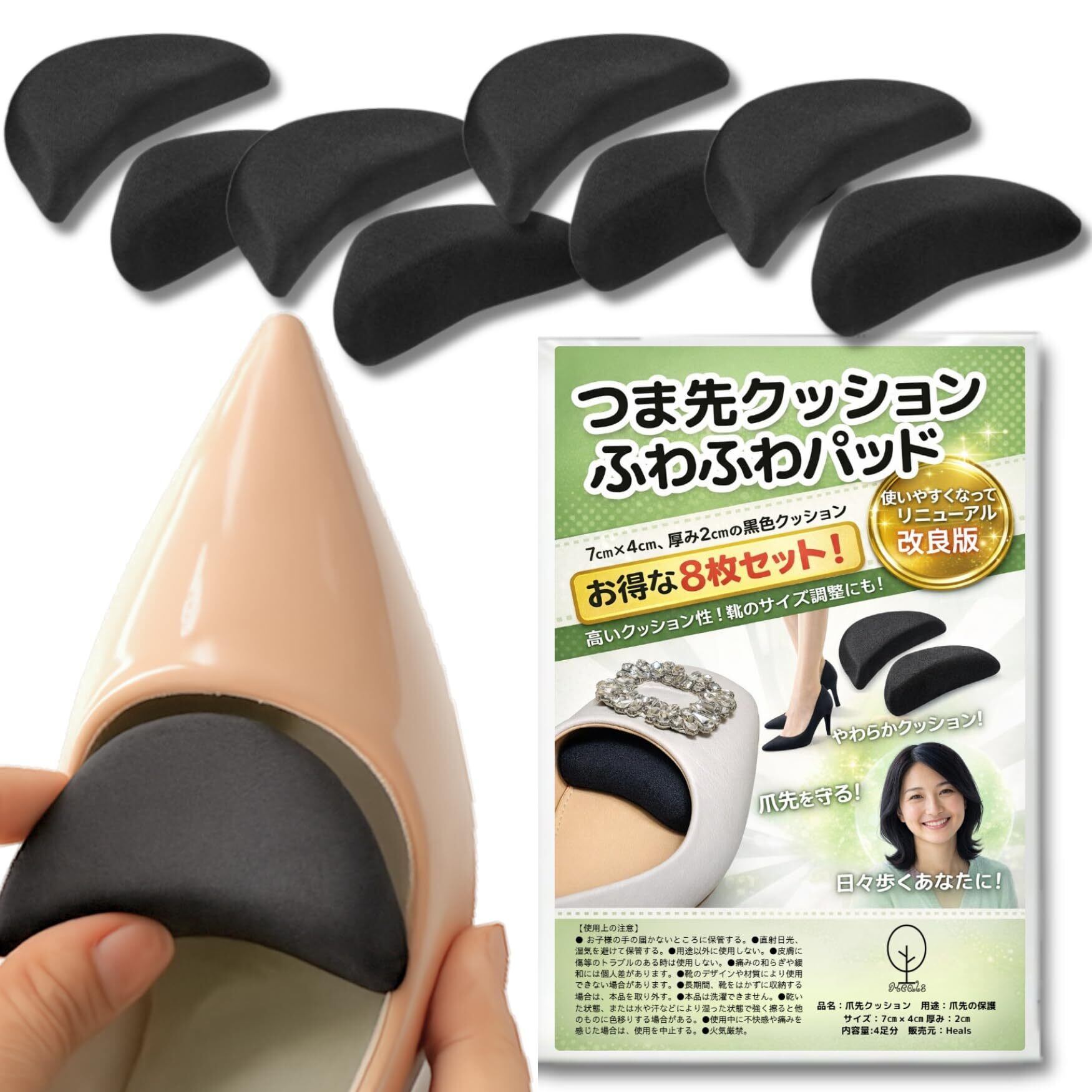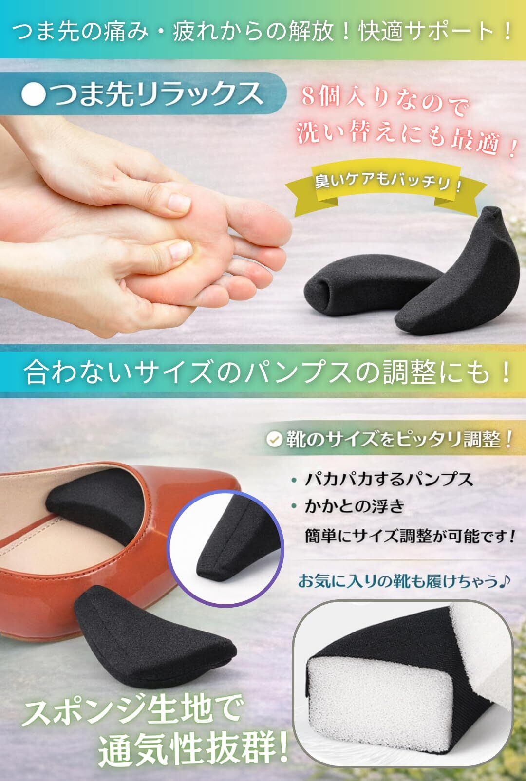 つま先クッション 8個 パンプス 前滑り防止 パカパカ解消 靴ずれ防止 インソール つま先パッド サイズ調整 脱げ防止 痛み軽減 低反発 レディース 靴用