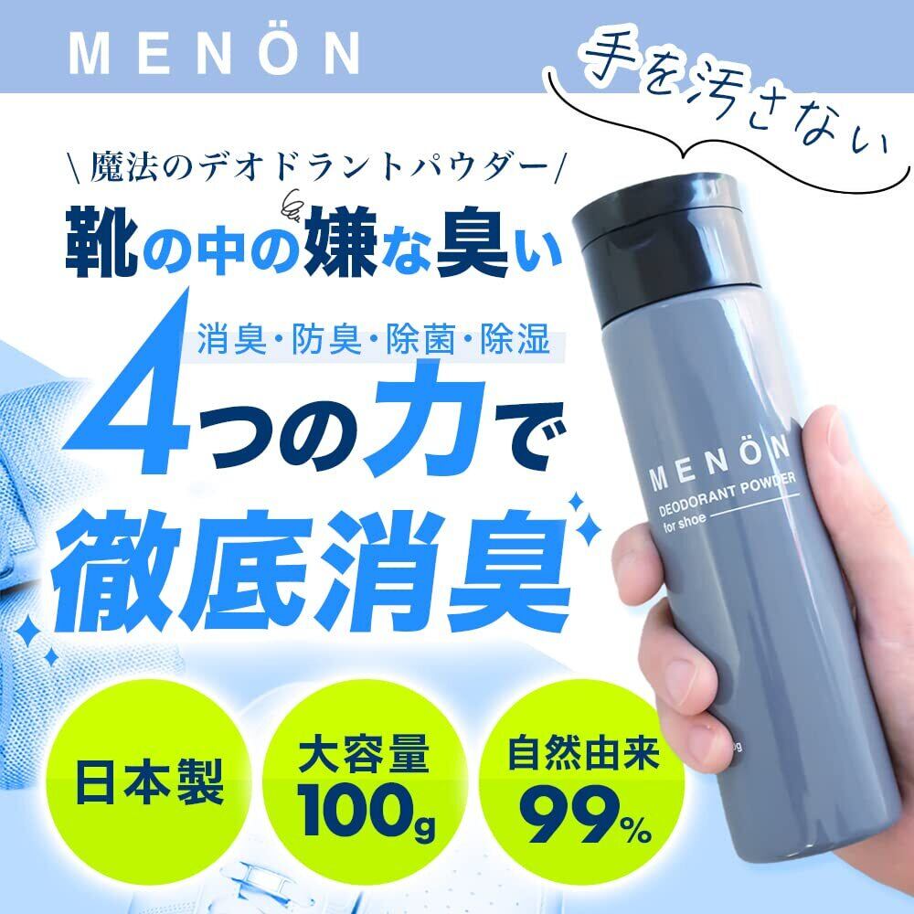 MENON 靴 消臭 パウダー 粉 100g 携帯サイズ ミョウバン 靴 消臭 入れるだけ 臭い 消し 革靴 消臭 対策 ムレ 強力 抗菌 除菌 無香料 日本製