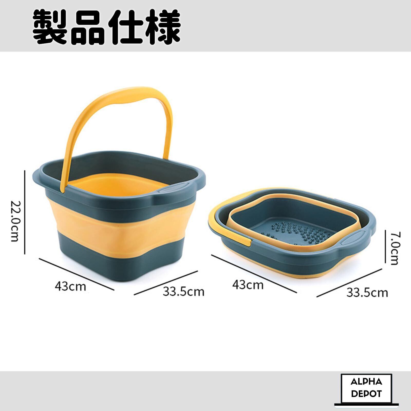 足湯 折りたたみバケツ フットバス 軽量 足湯器 自宅用足湯 アウトドア 13リットル (ダークグリーン・イエロー)