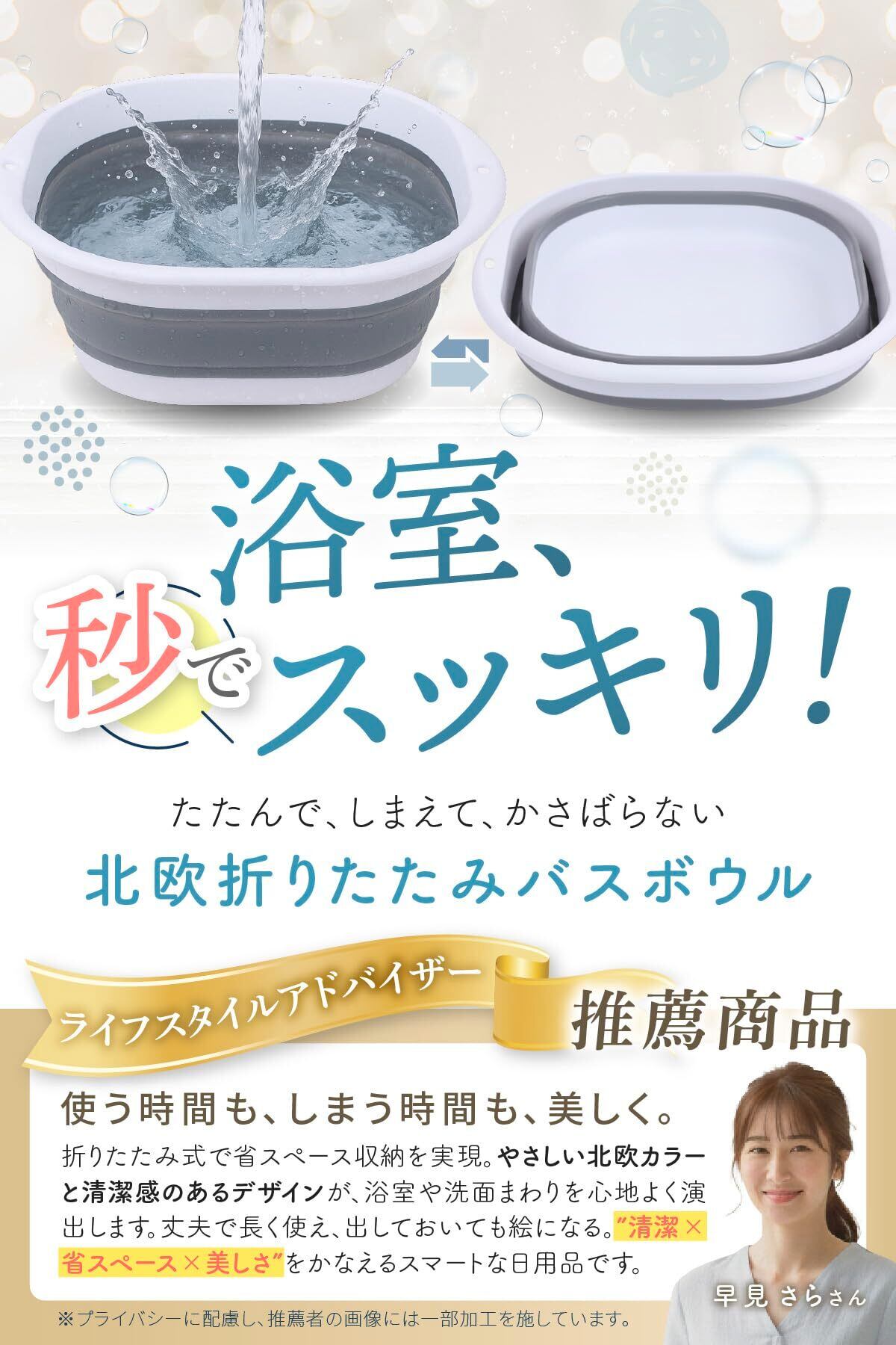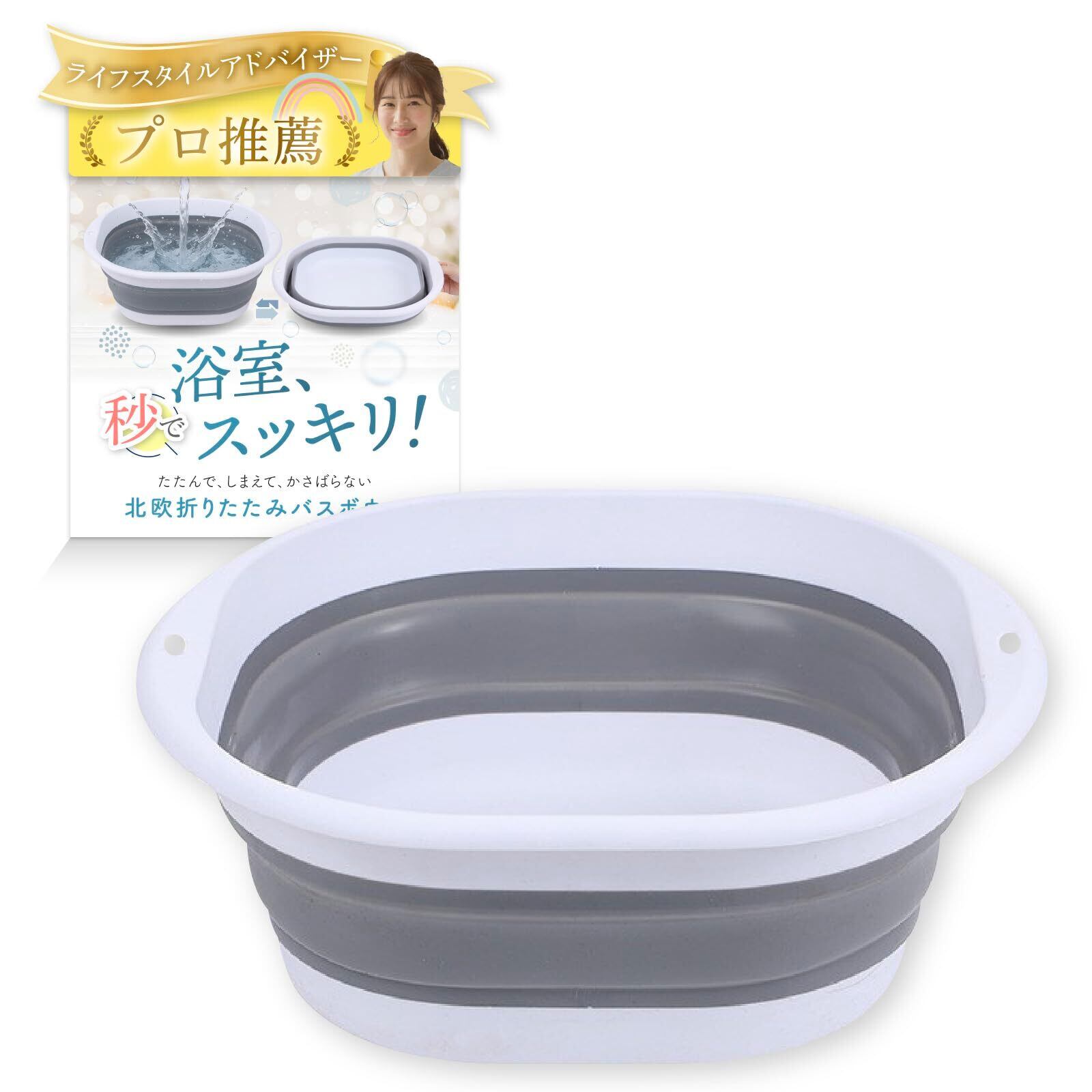 洗面器 折りたたみバケツ 風呂桶 おしゃれな北欧カラーでコンパクト収納 (グレー, L)