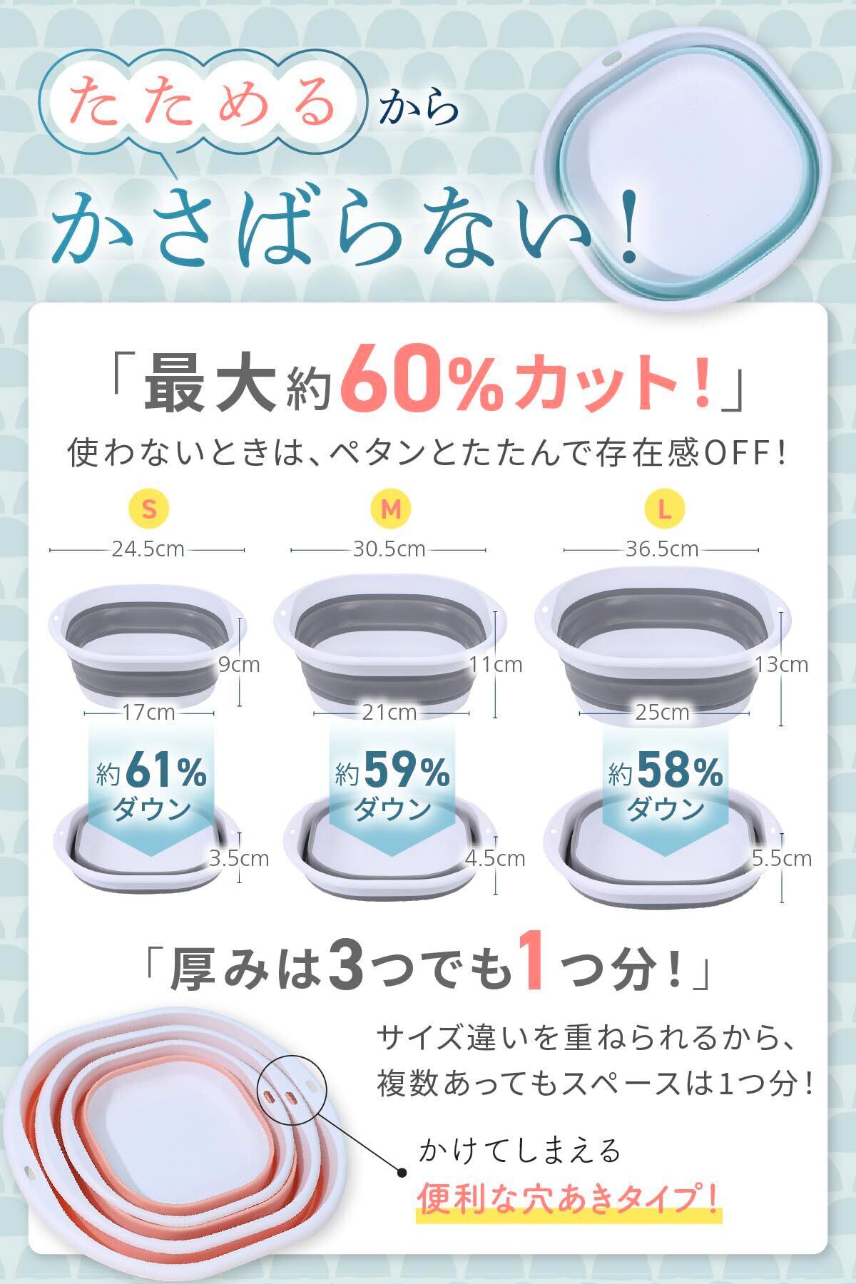 【折りたたみバケツ・コンパクト収納で空間すっきり】 使わないときは薄くたためる折りたたみバケツ仕様。折りたたみ洗面器としても使え、棚や洗面台下にスッと収納可能。バケツ折り畳みタイプなので、省スペースで清潔に保てます。