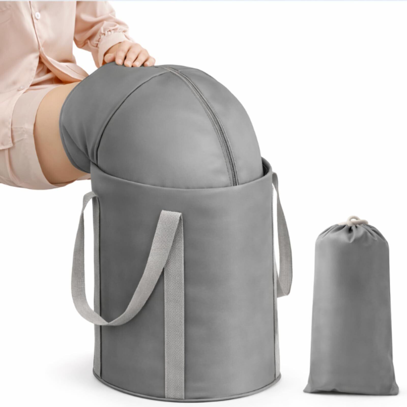 ドットコムプライム 折りたたみバケツ 足湯 足浴 バケツ 保温 足痩せ むくみ 冷やす フットバス 収納袋付き 太腿丈 グレー
