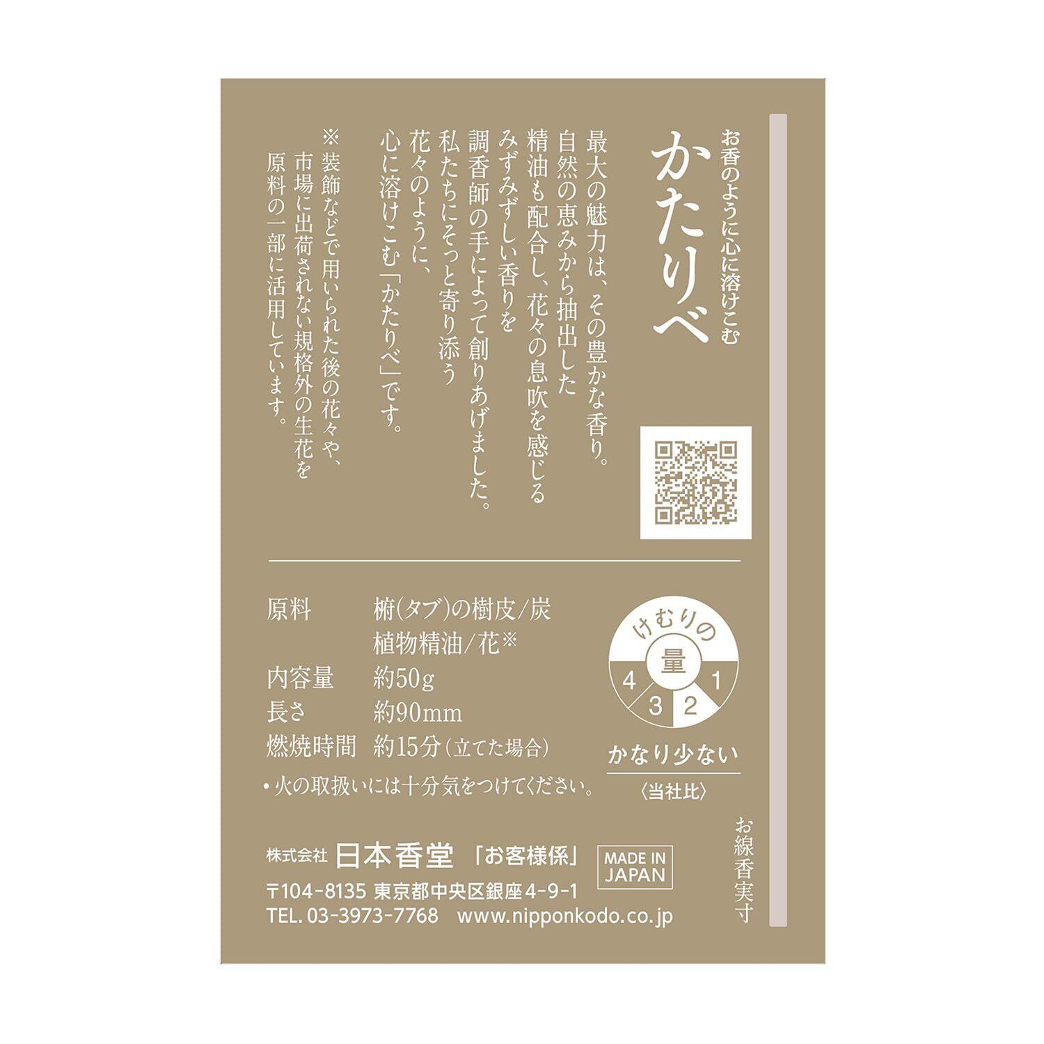 かたりべ ホワイトローズ 短いサイズ 約50g 線香 日本香堂 煙少なめ