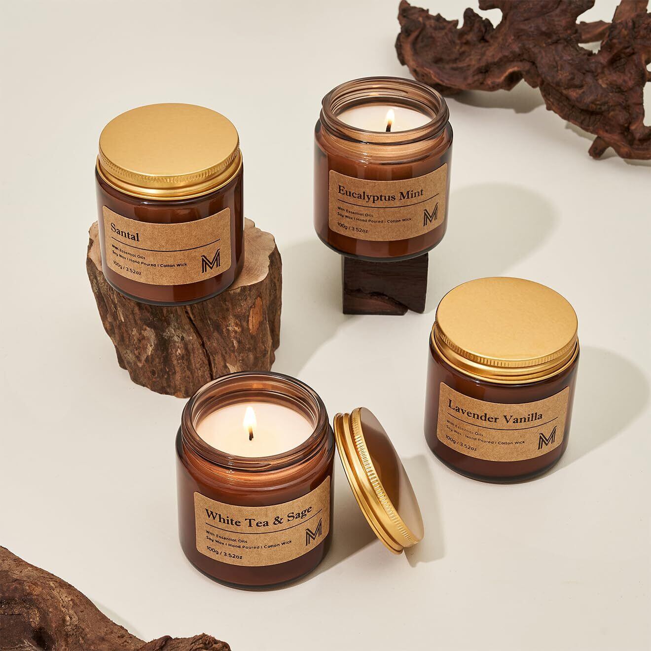 M&SENSE アロマキャンドル 4セット ミニ 蓋付き 花の香り バニラ ホワイトティー ラベンダー キャンドル 香薰蜡烛 アロマ ギフトセット 女性 人気 癒しグッズ ホワイトデー バレンタイン 母の日 ギフト 女性向け プレゼント