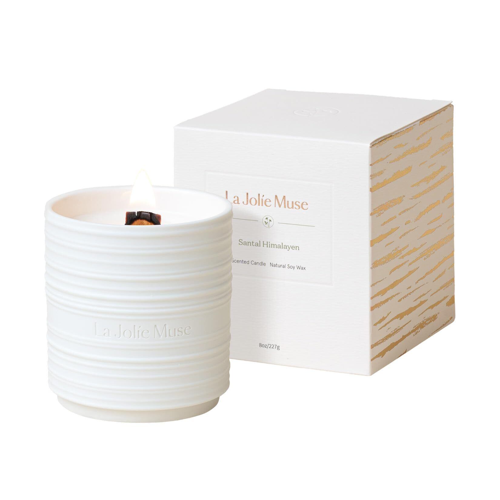 LA JOLIE MUSE アロマキャンドル サンダルウッドとパチョリの香り 木芯 天然ソイワックス 陶器缶 220g 燃焼時間50時間 女性向け ギフト