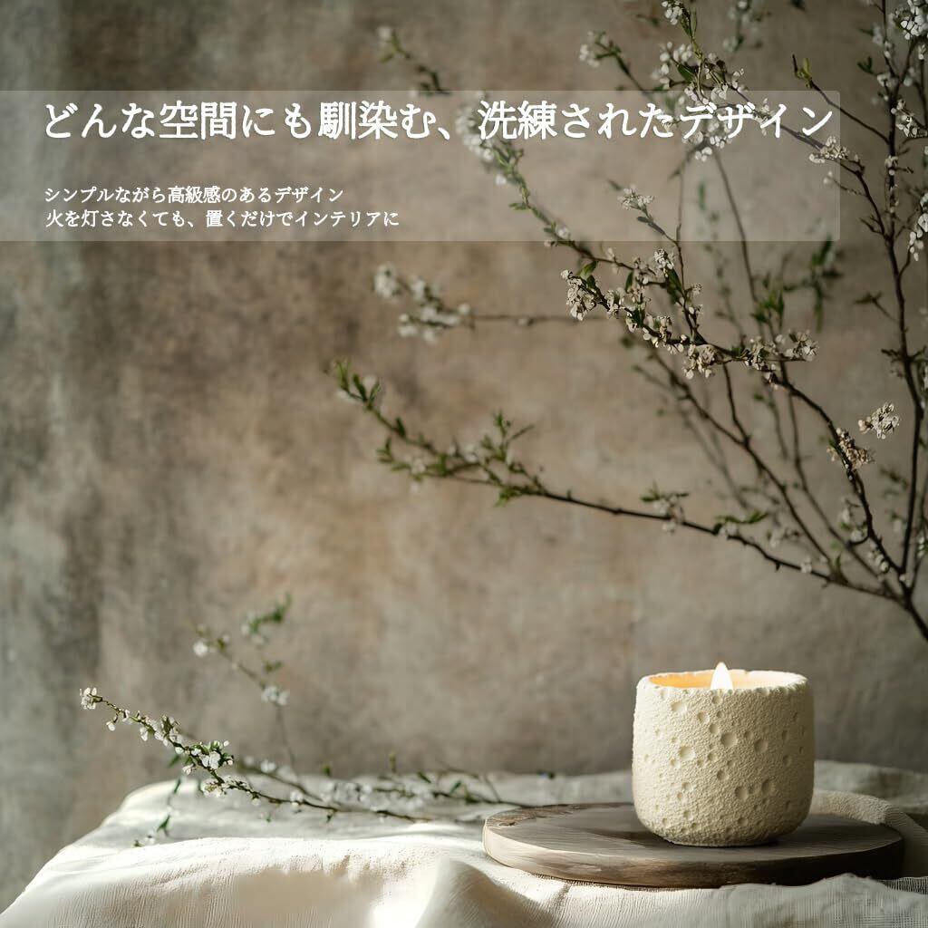 約35時間燃焼 | 毎日のリラックスタイムに寄り添う 200gで合計約35時間燃焼。1回約2時間で約17回分楽しめる長持ち設計。就寝前、読書、ヨガ、瞑想、バスタイムに最適
