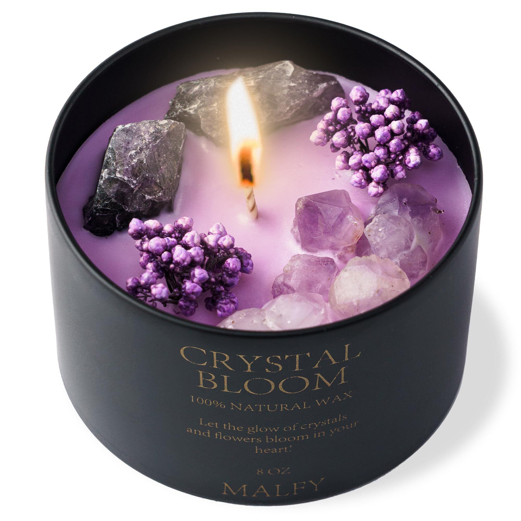 (癒し・浄化・自然)見た目も香りも、心を癒すアートアロマキャンドル 8オンス クリスタル ドライフラワー ソイワックス (プロヴァンスのラベンダー)