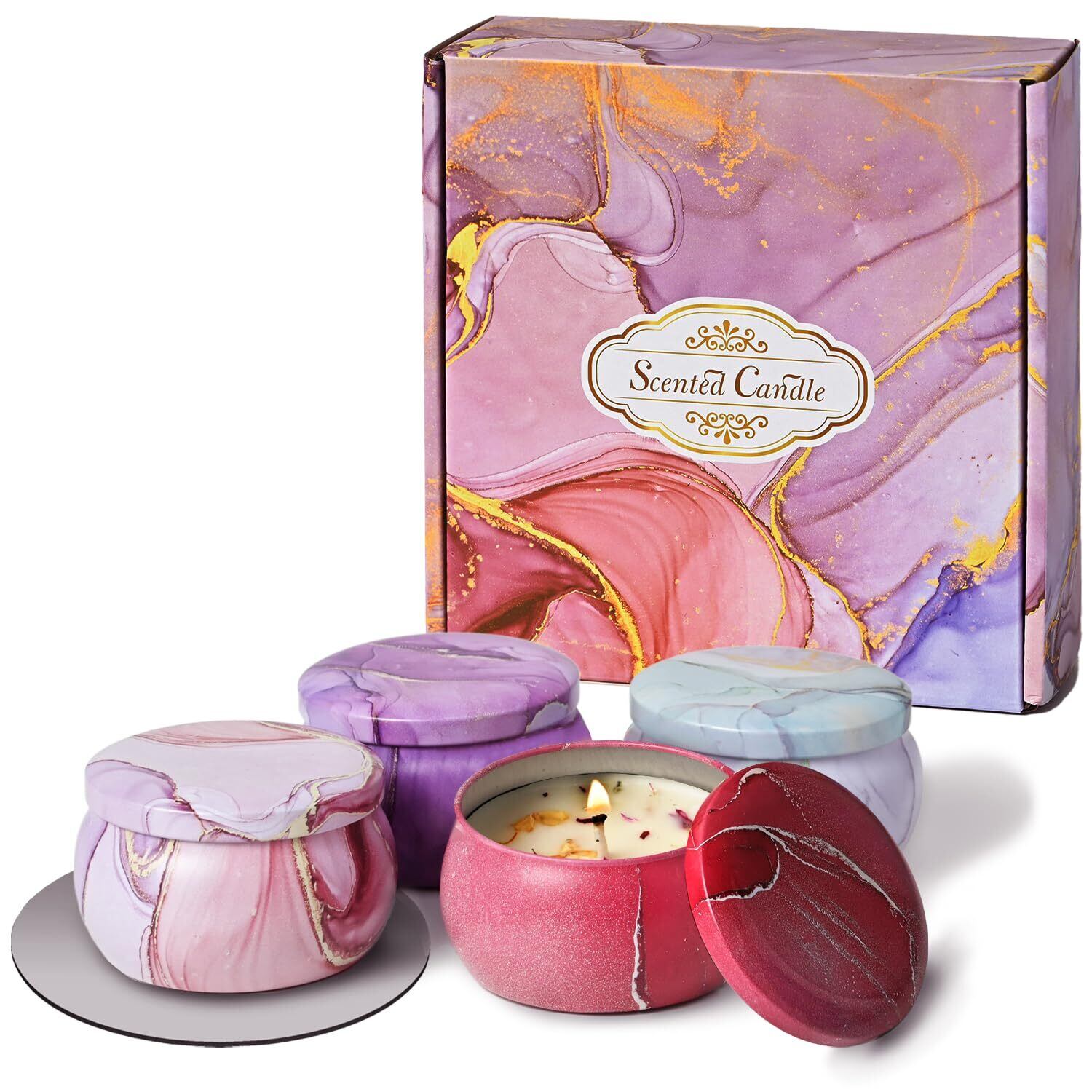 【1箱4缶 スペシャルセット】 埃 (ほこり)などが入りにくい [ 蓋つき缶 ] に入っております。 それぞれが違うお花の香りで 気分によってお楽しみいただけます。 ラベンダー、 バニラ、 ローズ(薔薇)、 ガーデニア ( クチナシ ) の香りでリラックスタイムに、 穏やかで心地よい空間を作り出すことができます。