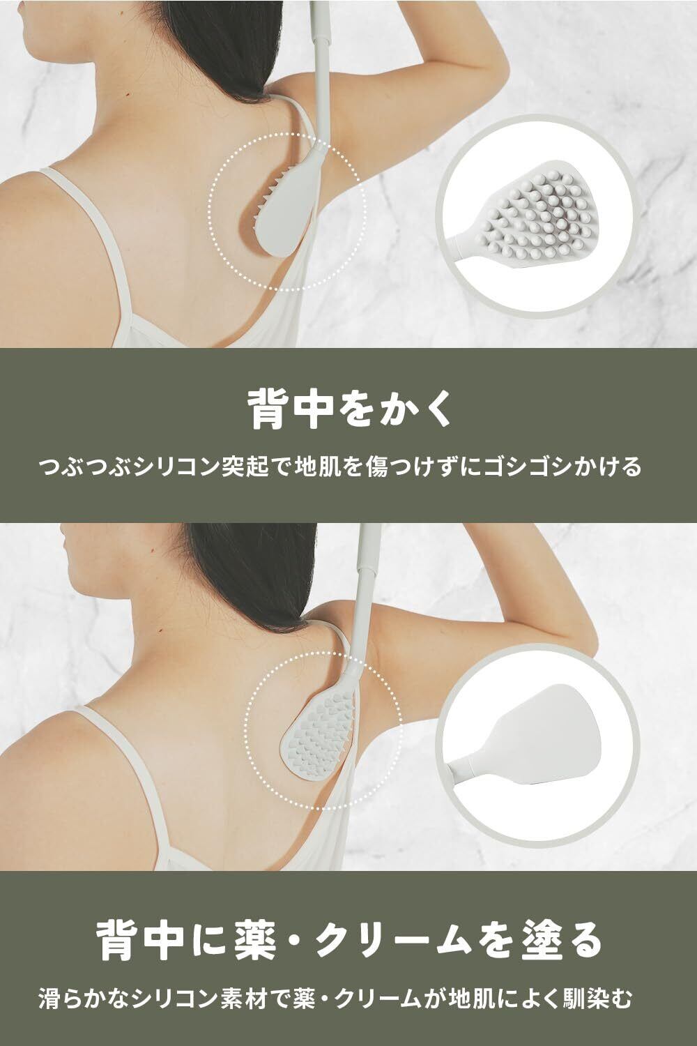 【2WAY仕様】表面のシリコン突起は孫の手、裏面は背中に薬やクリーム 軟膏を塗る道具としてご使用いただけます。