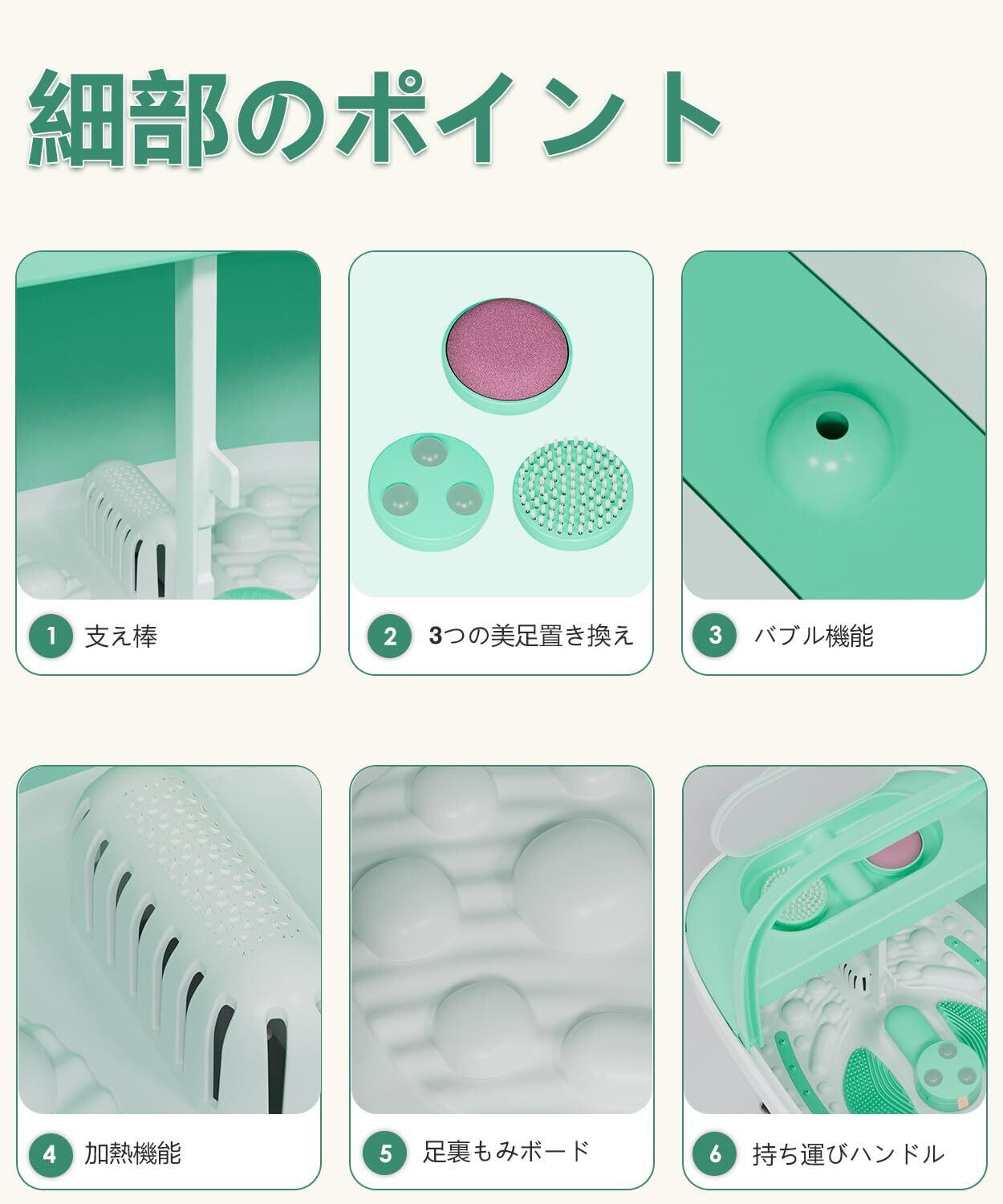 折りたたみ 足湯 足湯器 フットバス 加熱・保温機能付き バブル機能 高温自動オフ 水と電気分離 Q持ち運びハンドル静音設計 日本語取扱説明(ミントグリーン)