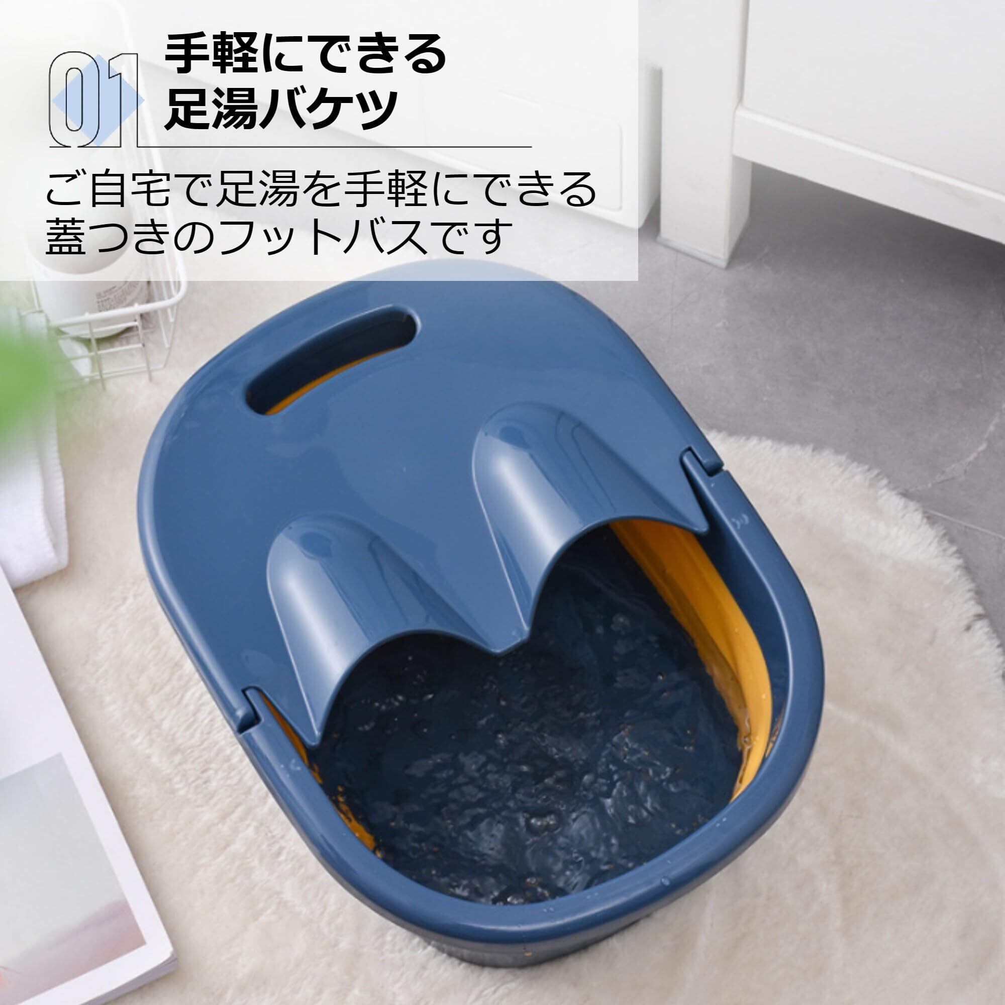 【手軽にできる足湯バケツ】ご自宅で足湯を手軽にできる蓋つきのフットバスです。蓋がついていることで保温効果も高いです。