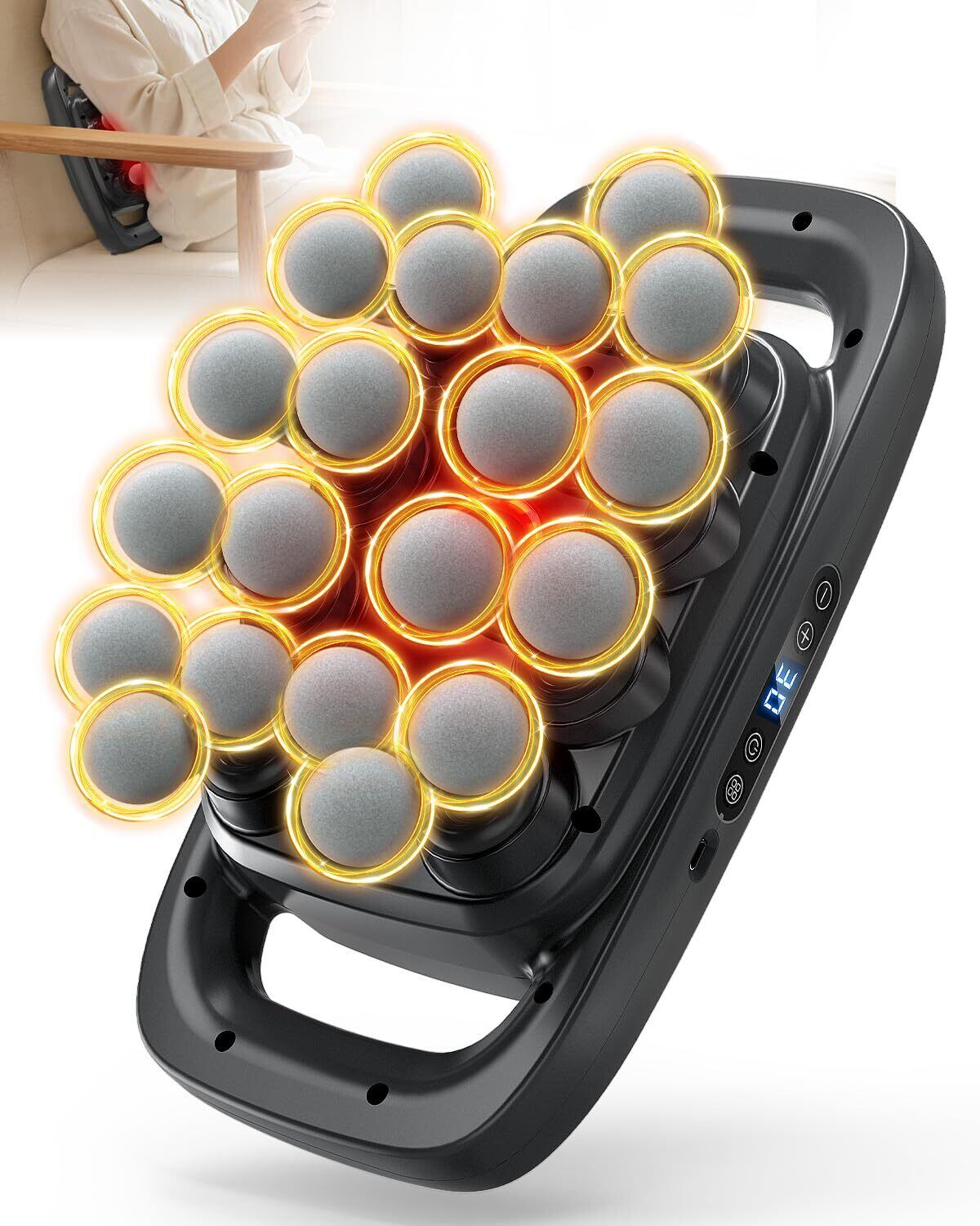 【20ヘッド筋膜リリースガン】今回の筋膜リリースガンは、従来の単発ヘッドの概念を覆す業界初の20ヘッド設計を採用しています。20点の振動ポイントが同時に筋膜をほぐします。より広範囲をカバーし、より快適なリリース効果を実現されます。従来の「点リラックス」から「面リラックス」へ実感や効果は大幅に向上しました。また、従来型パワーガンで届きにくい腰・背中の深層部位を広域カバーし、ソファーやベッドに置くだけで、腰や背中など、通常のガンでは届きにくい部位もらくにケアできます。重たいガンを持つ必要がないため、腕の疲れもなく、わずか数秒で全身がほぐれるような、効率的かつ深いリラックスを体感いただけます。