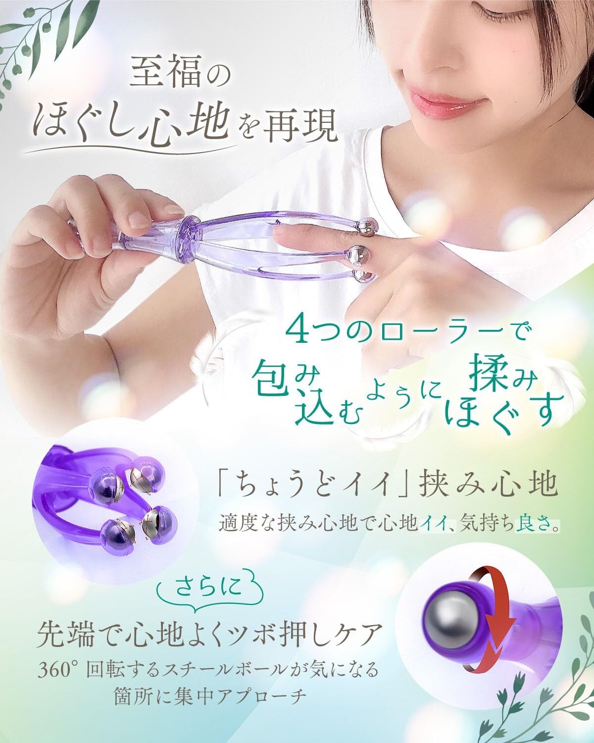 【シンプルな操作で、誰でも簡単マッサージ】電源不要の手動タイプで、使い方はとても簡単。指や手のひらに当てて転がすだけで、心地よい刺激を与えます。年齢や性別を問わず、どなたでも手軽に使用できます。