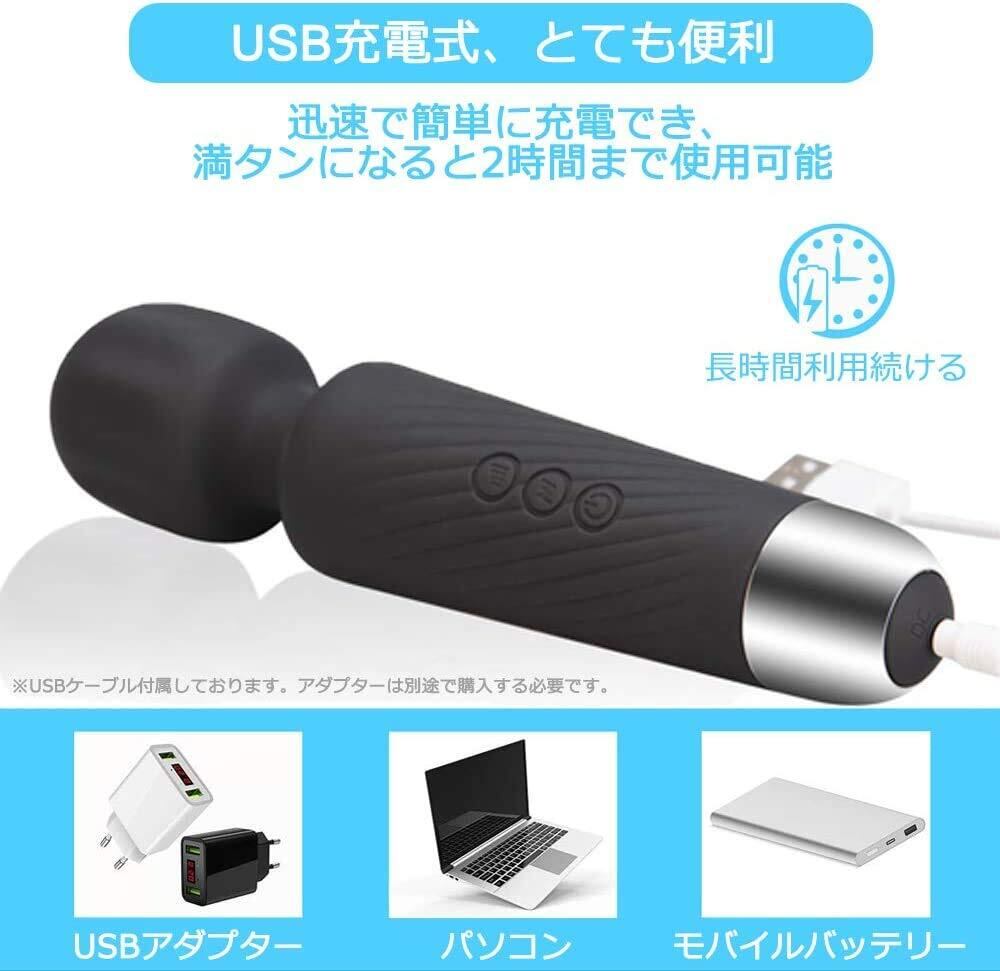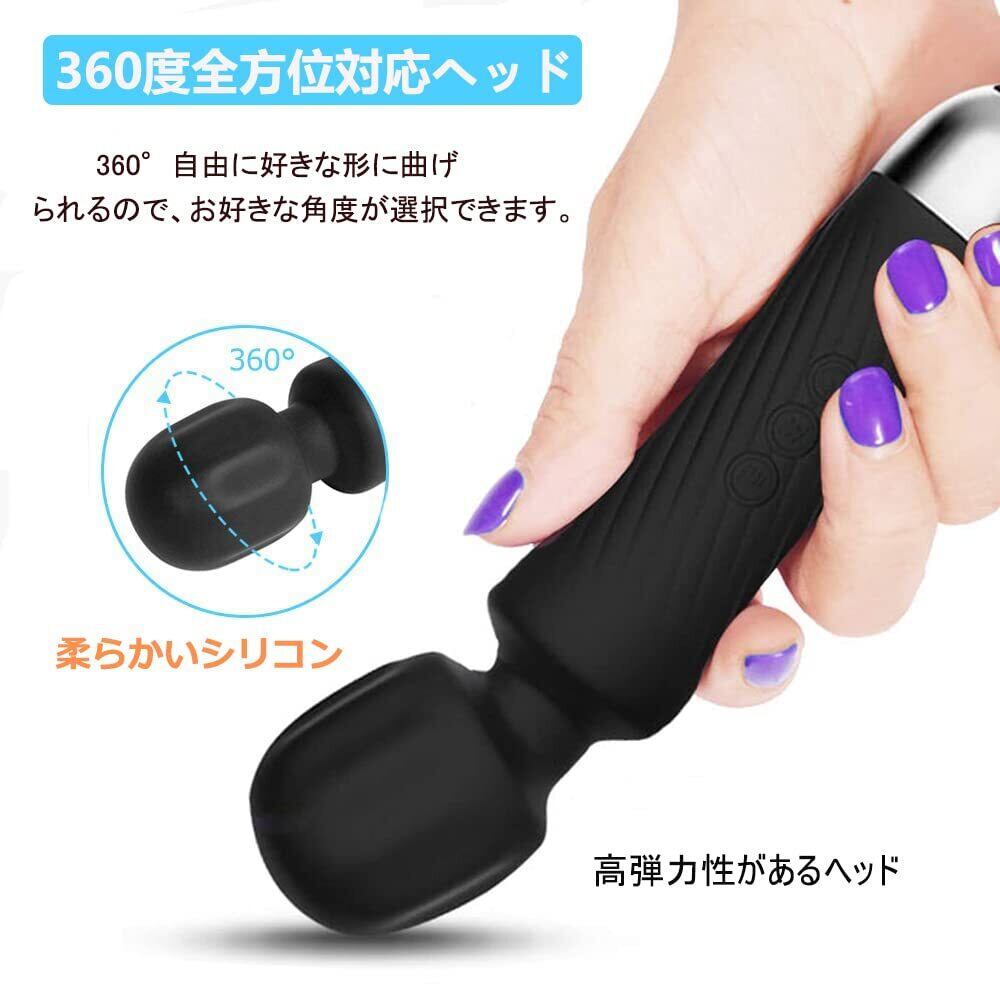 電マ 人気デンマ強力 コードレス RaykelUSB充電式 軽量 携帯便利 手が痺れない 電ま 360°曲がりヘッド 静音設計 防水 でんま 電動ハンディ (Black)