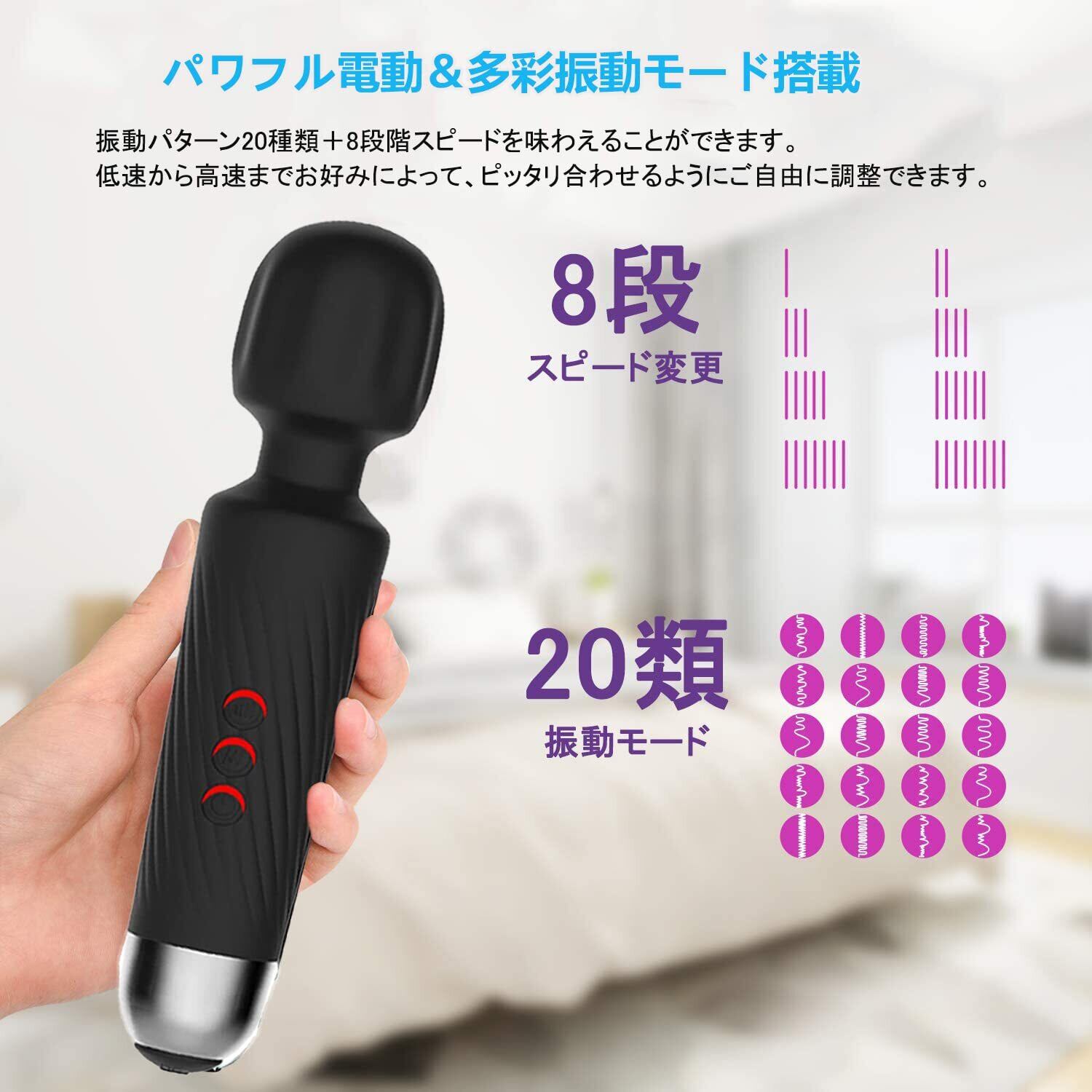 【低騒音な強弱8段階振動*20種類パターン】次世代強力モーターが内蔵され、強弱8段階振動x20種類パターン=160種が使用できます。自由に調節でき、お好みのパワーで筋膜リリースしよう。ノイズ低減モーターなので静音性もよい!