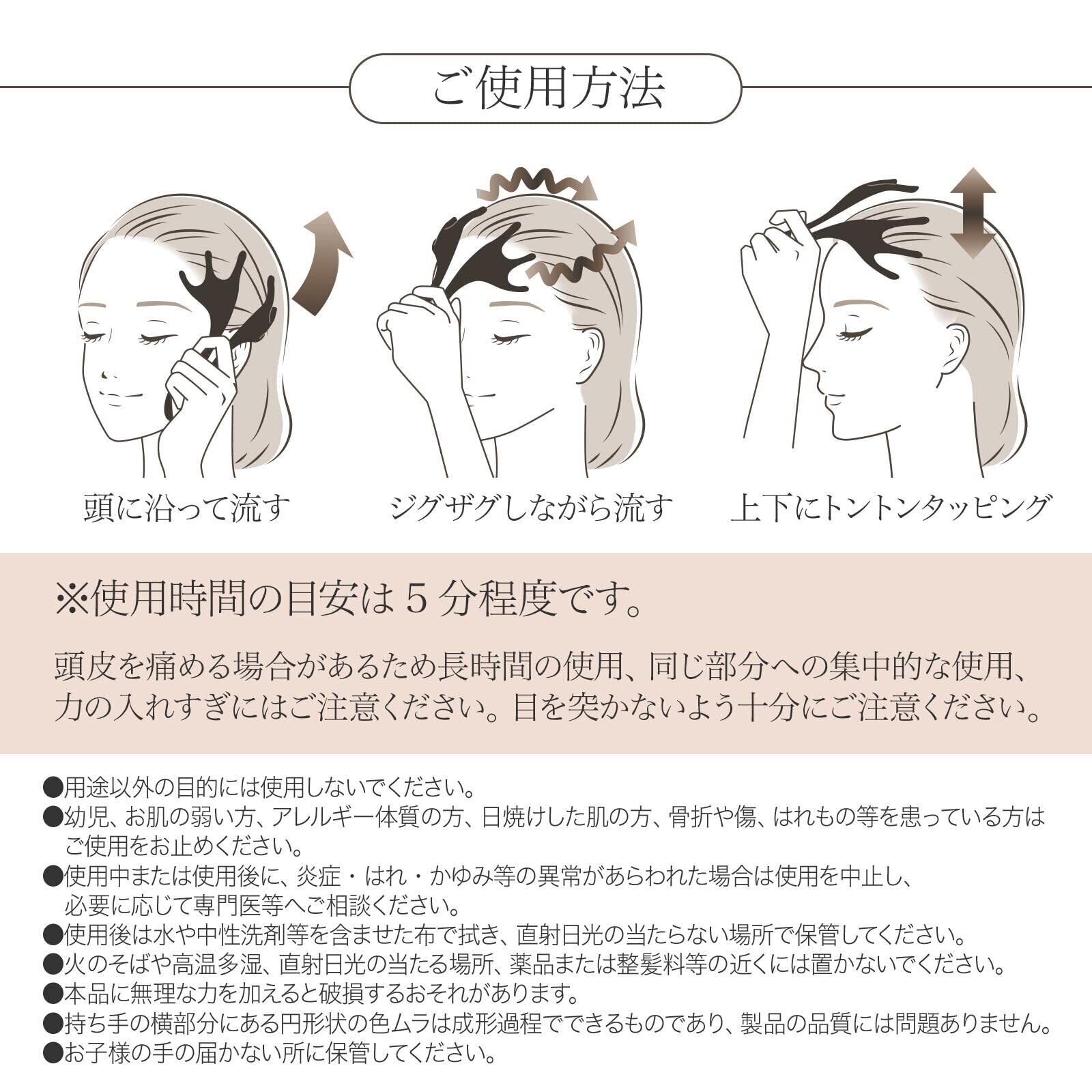 頭皮を傷める場合があるため長時間の使用、同じ部分への集中的な使用、力の入れすぎにはご注意ください。目を突かないよう十分にご注意ください。