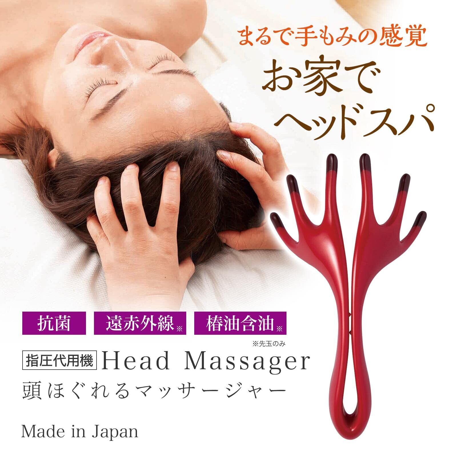 コモライフ 頭ほぐれる マッサージャー 頭皮 マッサージ ヘッドスパ 椿油 遠赤外線加工 抗菌 指圧代用 日本製