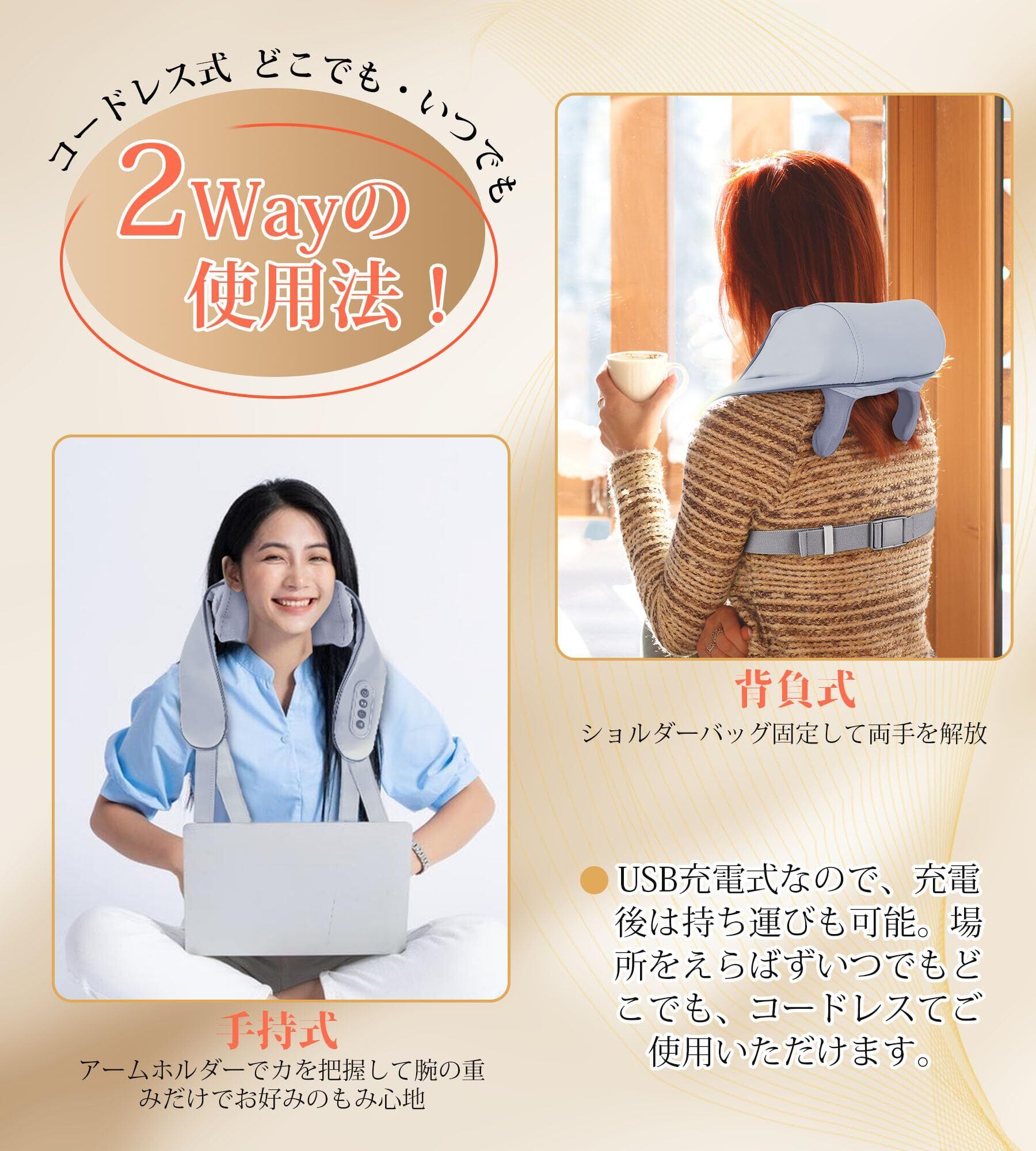 ALLJOY ネックリラックス 充電式 首 肩 軽量 女性 2モード 3強度調整 加温 オフタイマー コードレス 首・肩・腰・背中・太もも リラクゼーション器 男女兼用 家庭用 職場用 プレゼント ギフト