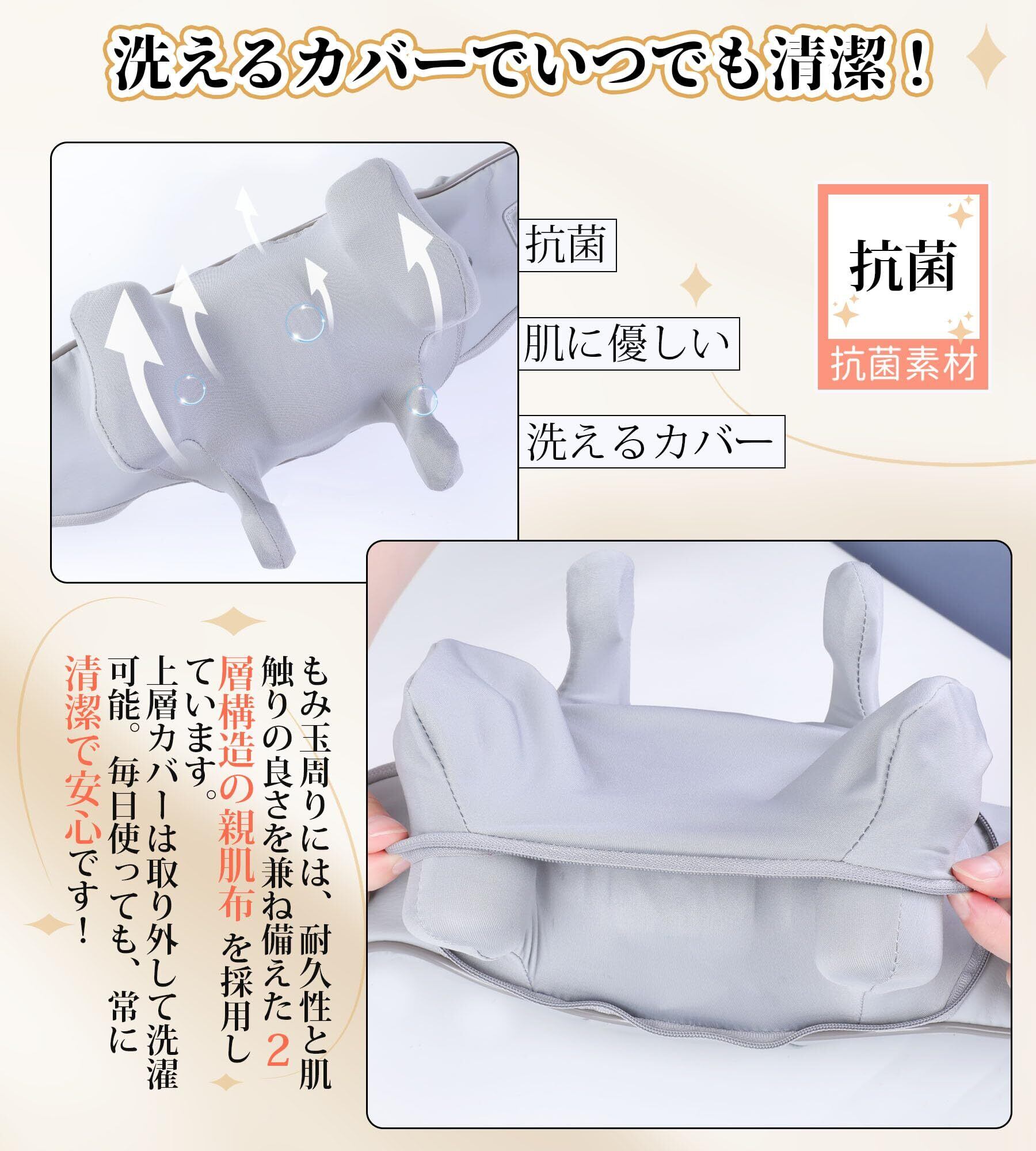 【静音設計・10分の自動オフ・家族や友人とシェア可能】こちらの首元リラクゼーション機器は、高性能モーターを採用し、動作音を約40dB以下に抑えた静音設計。就寝前や仕事中でも周囲を気にせずご使用いただけます。10分の自動オフ機能付きで、寝落ちしてしまってもOK。また、カバーは取り外して洗える仕様のため、常に清潔に保てて衛生的。ご家族やご友人ともシェアしやすく、みんなで使える便利な設計です。