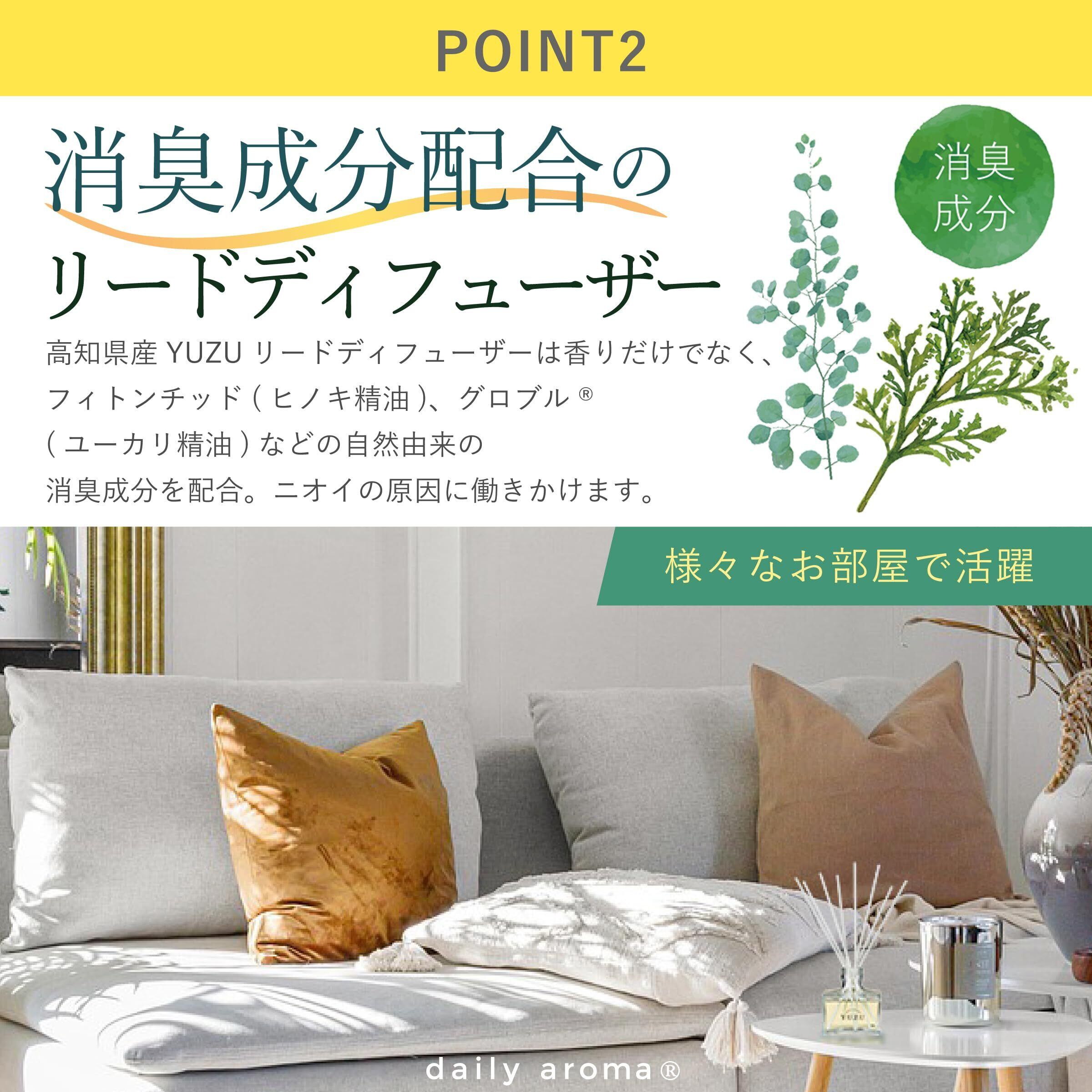 デイリーアロマ 高知県YUZU 消臭リードディフューザー 120mL 柚子の香り | デイリーアロマジャパン 日本製 ユズ ゆず 高知県産ゆず精油配合 ギフト プレゼント 芳香剤 消臭剤 ルームフレグランス 消臭 除菌 インテリア | 毎日発送✿はなまる