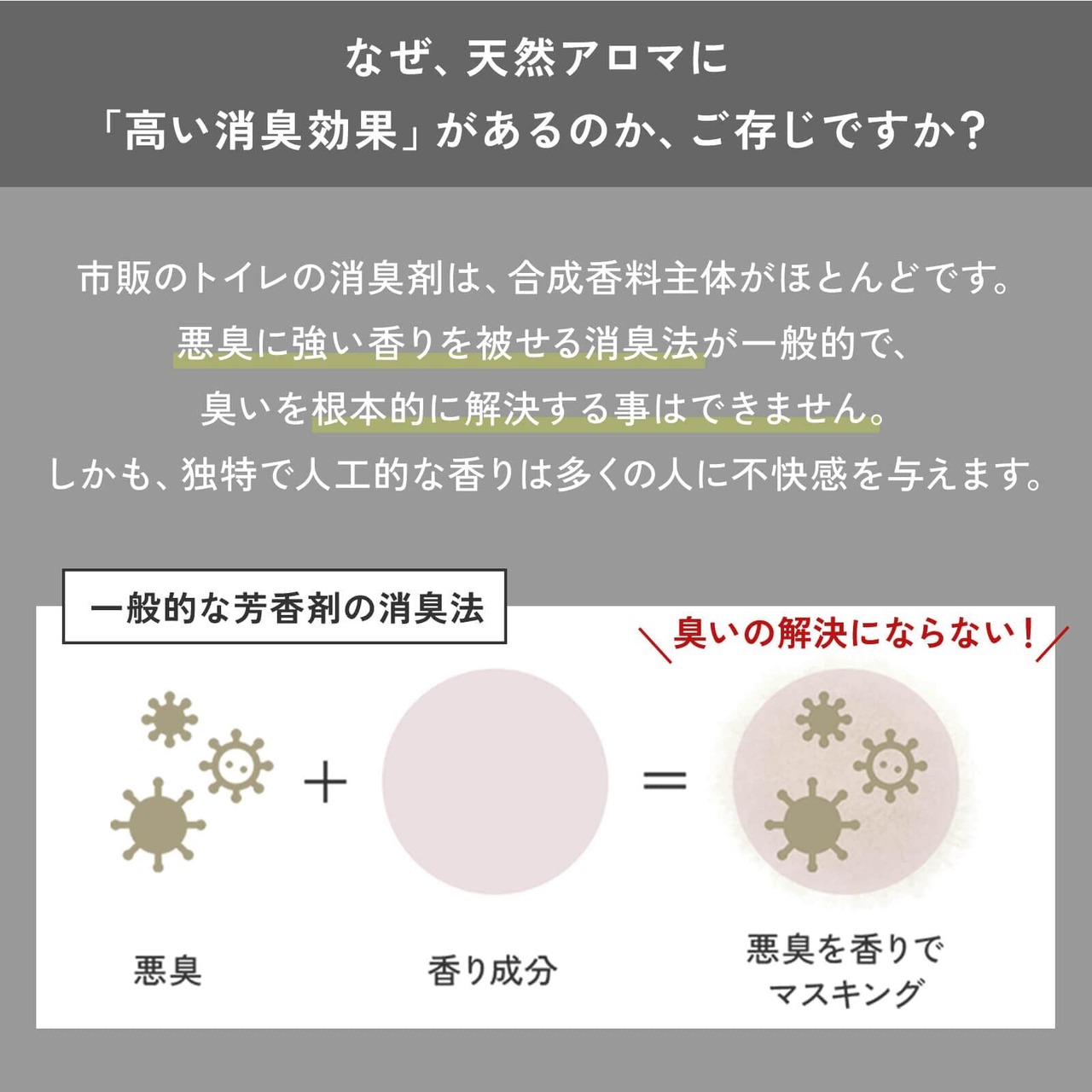 【天然アロマのトイレ用芳香剤 】植物から抽出した天然アロマでつくったトイレ用芳香剤です。市販の合成芳香剤のキツイにおいや人工的なにおいが苦手な方におススメです。